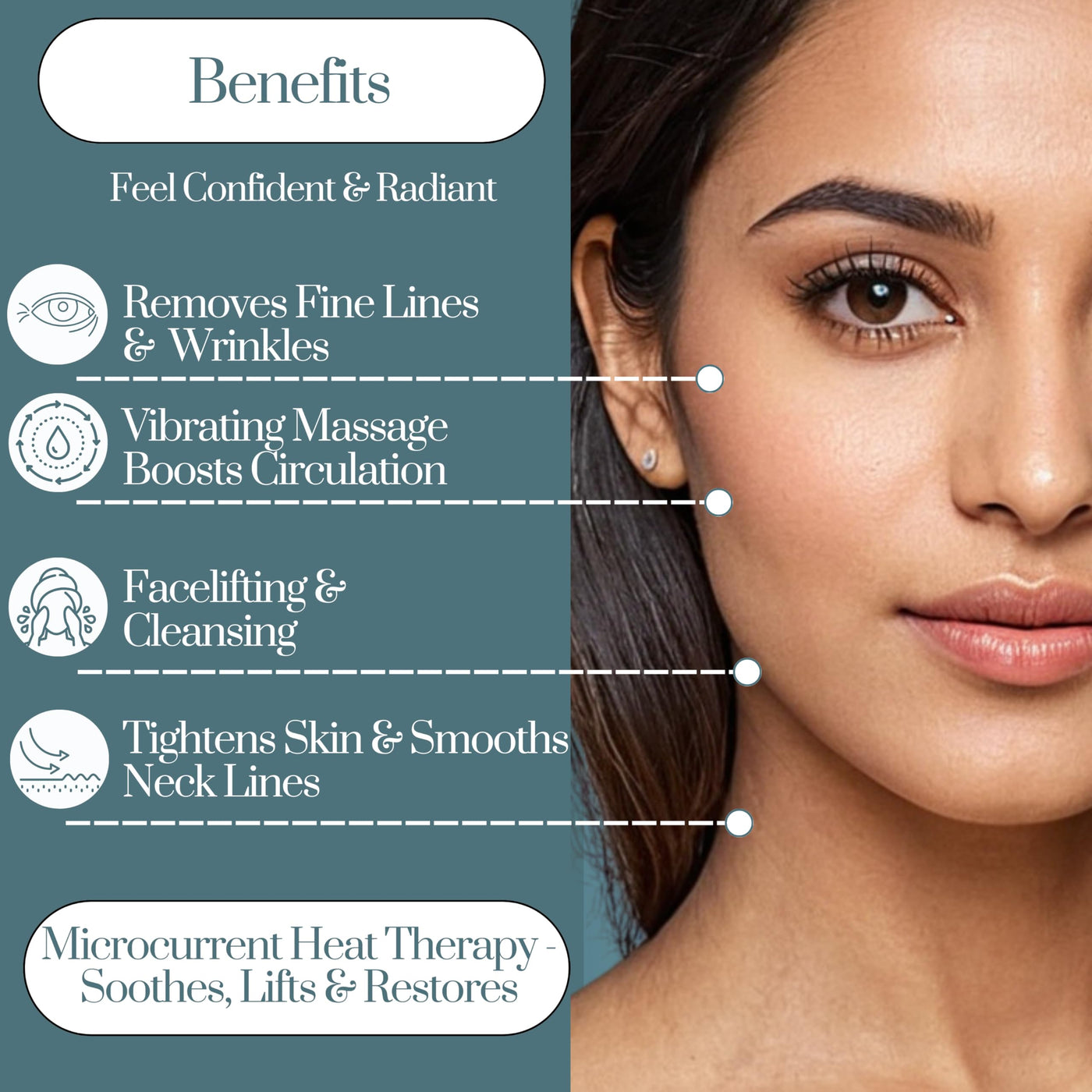 - Microcurrent-Like Warmth (Up to 45C) Experience a gentle, microcurrent-inspired heat that helps your skin appear smootherno clinic visits needed. Pair with serums or moisturizers for an extra boost in your routine.