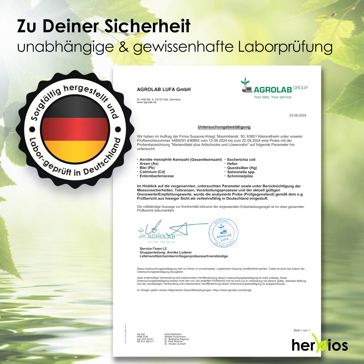 - QUALITY FROM GERMANY: Herbio's products are responsibly manufactured in Germany and independently laboratory tested. These high-dose milk thistle capsules are also available in pharmacies (PZN 19460193).