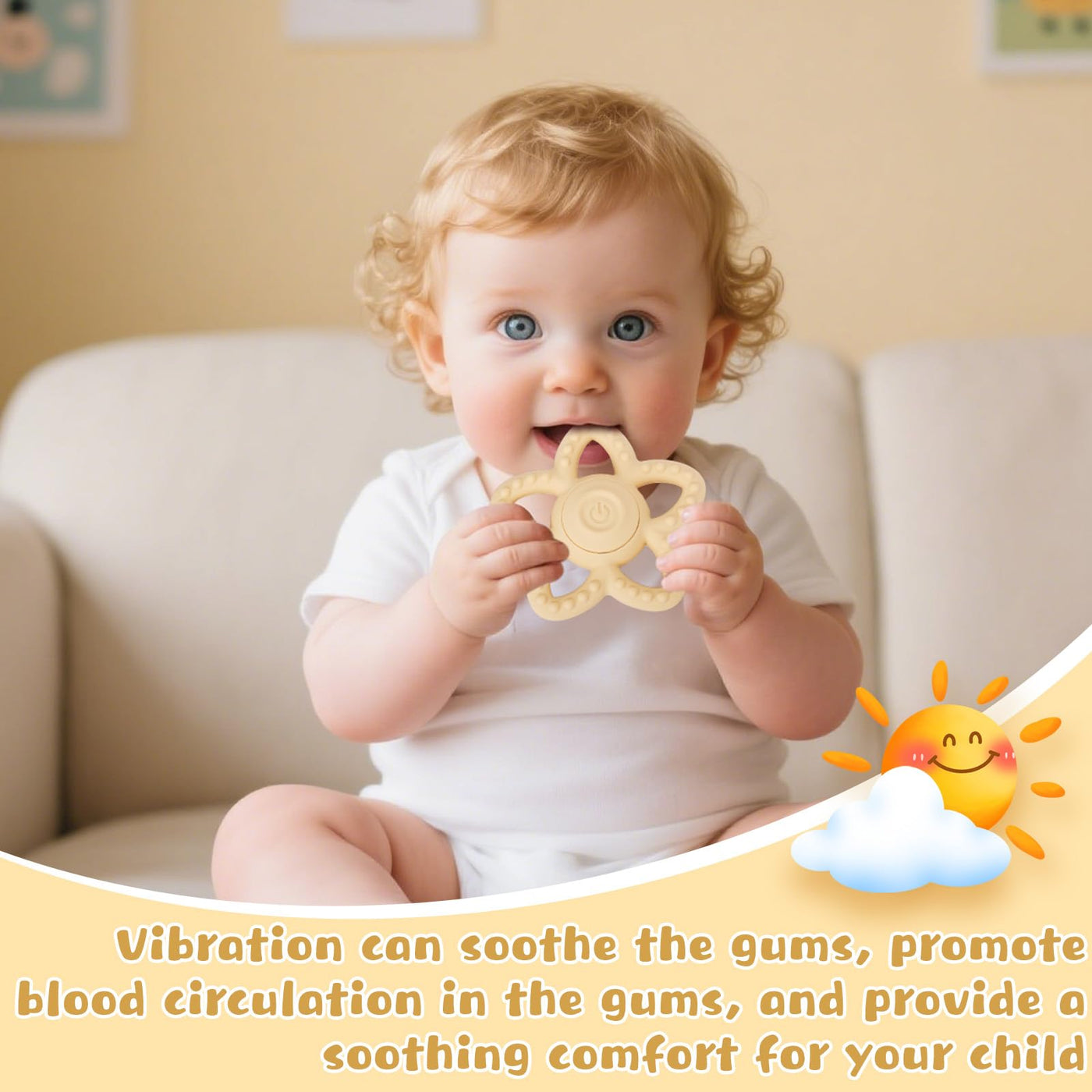 - Soothing Vibrations for Teething Babies:Ease your babys discomfort with our baby teething toys, featuring gentle vibrations that provide instant baby teething relief! The rhythmic pulses mimic a soothing massage, reducing inflammation and encouraging healthy gum development.The ergonomic shape fits tiny hands perfectly, while the soft silicone teethers for babies are gentle on emerging teeth. Whether used as a classic baby teether toy or a comforting sensory tool, its a must-have for every parent navigating the teething phase!