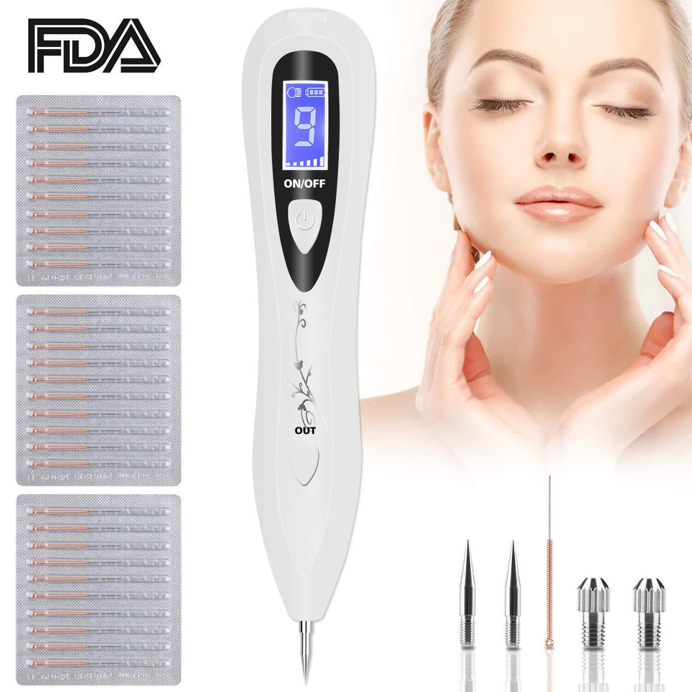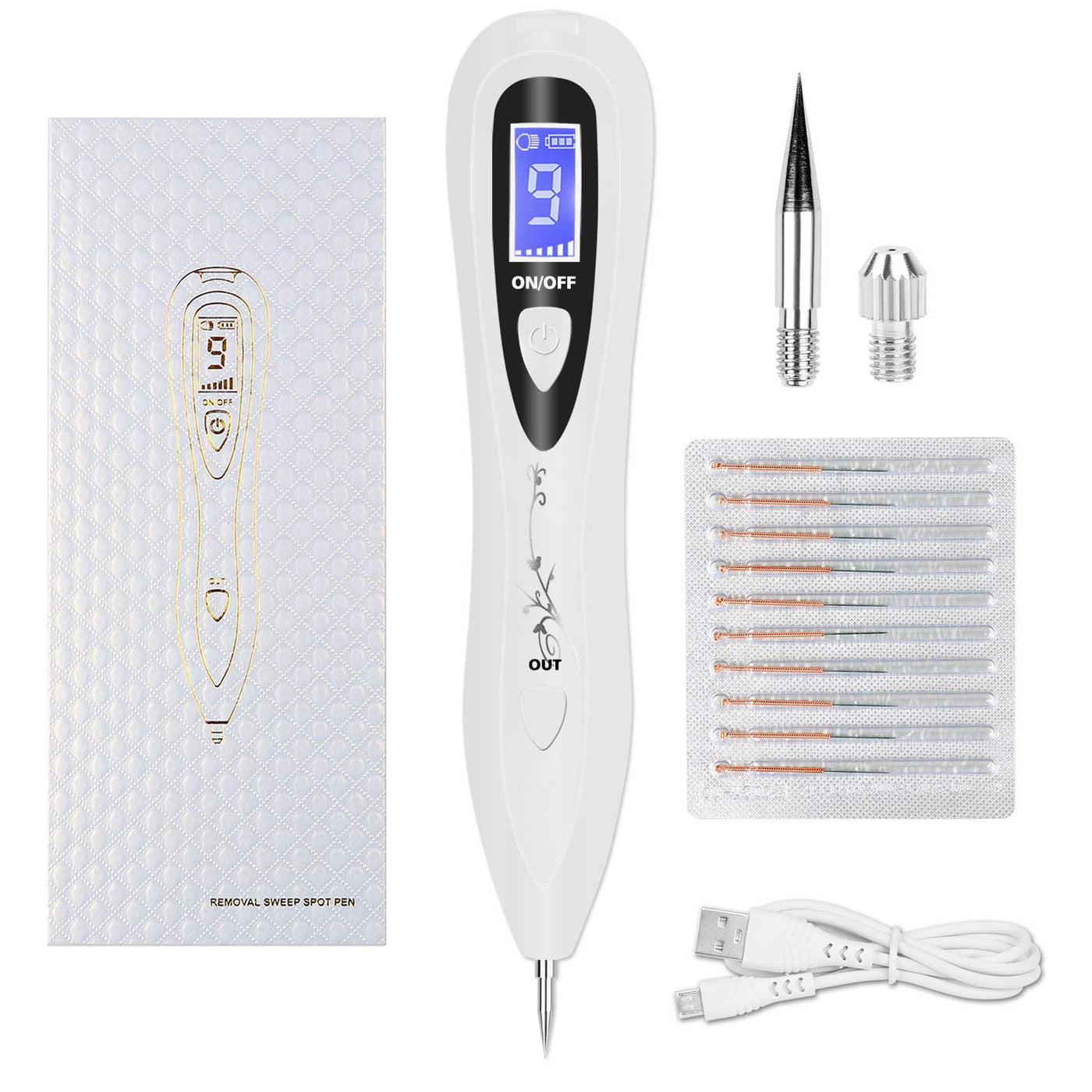 - Easy to use Easy to use and works well, you just need to connect the USB charging cable and charge it before you start. Then, insert the needles you need. The package came with most of the needles you need for all occasions, such as moles, spots, dark spots. Equipped with HD LCD screen to show the 9 strong levels and remaining power.