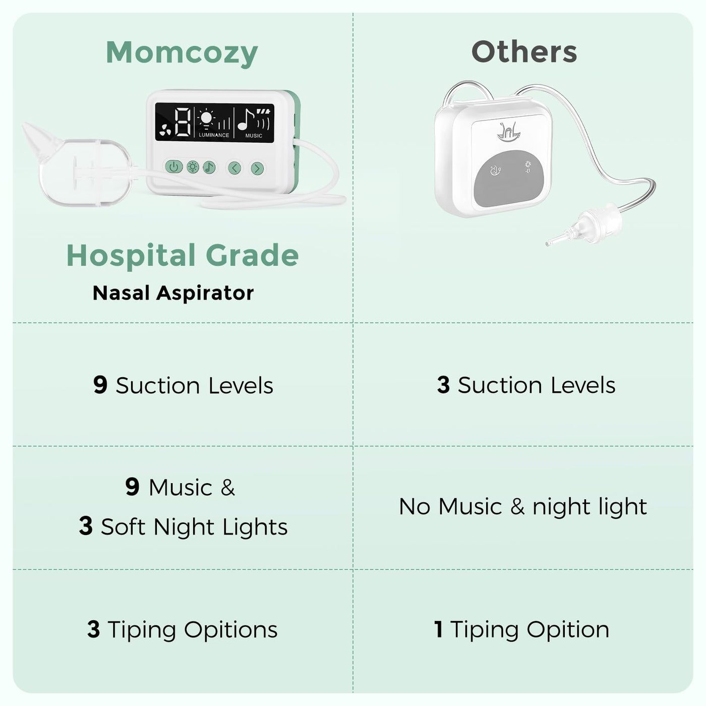 Momcozy Nasal Aspirator for Baby, „ÄêHospital-Grade„Äë 70 KPa Strong Suction & 9 Suction Levels Nose Sucker, Electric Nose Cleaner for Toddler & Newborn, Soothe Light & Lullabies, BPA Free Silicone Tips