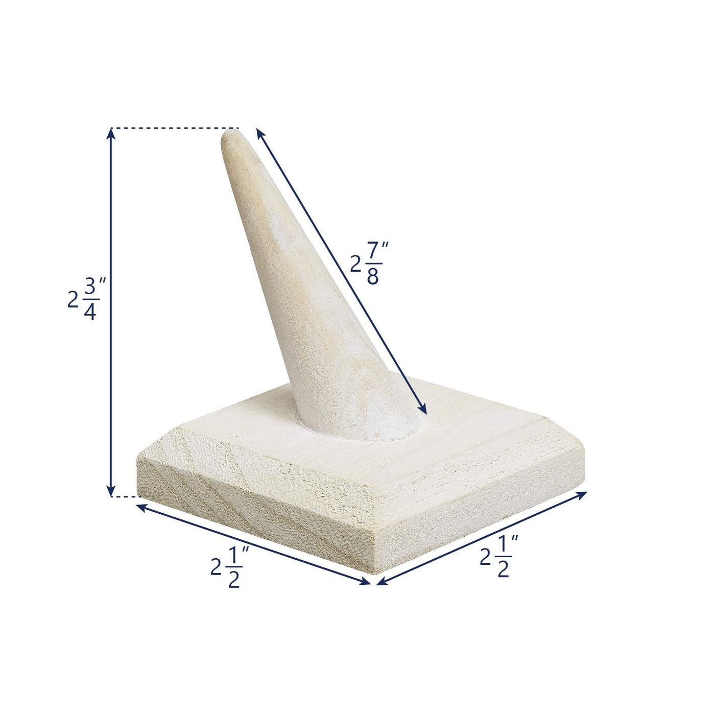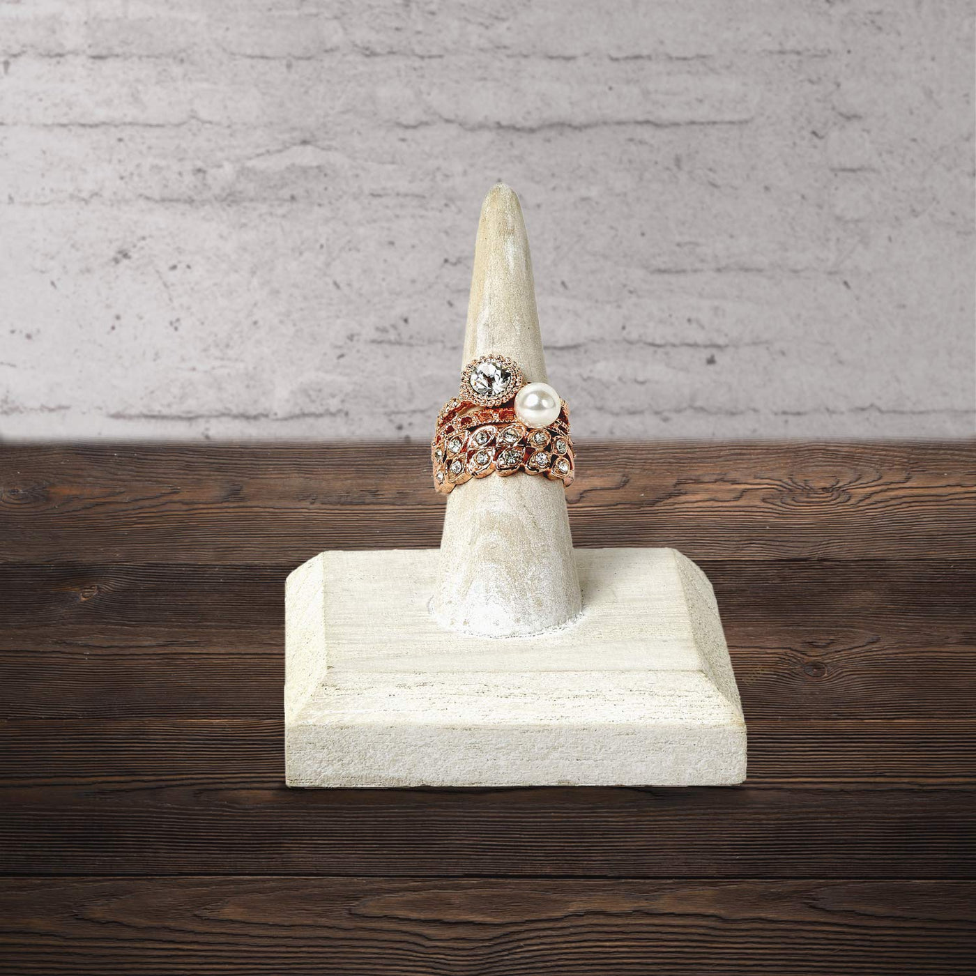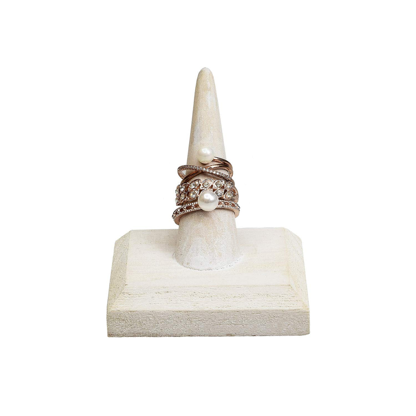 Color:Wash White Product Details - Wooden Jewelry Display Stand Organizer Holder Rack Showcase. Display your rings in a creative way! The set of 4 wooden ring stands is perfect for photographing and showcasing your rings. Made from lightweight wood with a finger shaped holder, the stand can perfectly stand out your jewelry on the countertop and great for retail stores, trade shows or even for holding your personal jewelry at home. FEATURES - Each package comes with 4 pieces of wooden ring stands. - A perfect place for your ring. Each holder can hold and display one ring. - Making your jewelry stand out and easy viewing. - Great for your personal collection, retail stores, and craft show displays. Sturdy and easy to store, the ring stand is a great way to display rings on your counter tops or in a showcase or simply organizing at home. - The material of wood can perfectly brighten up your accessories while displaying. It won’t take much space but well organized. Size Overall: 2 1/2"W x 2 1/2"D x 2 3/4"H.
