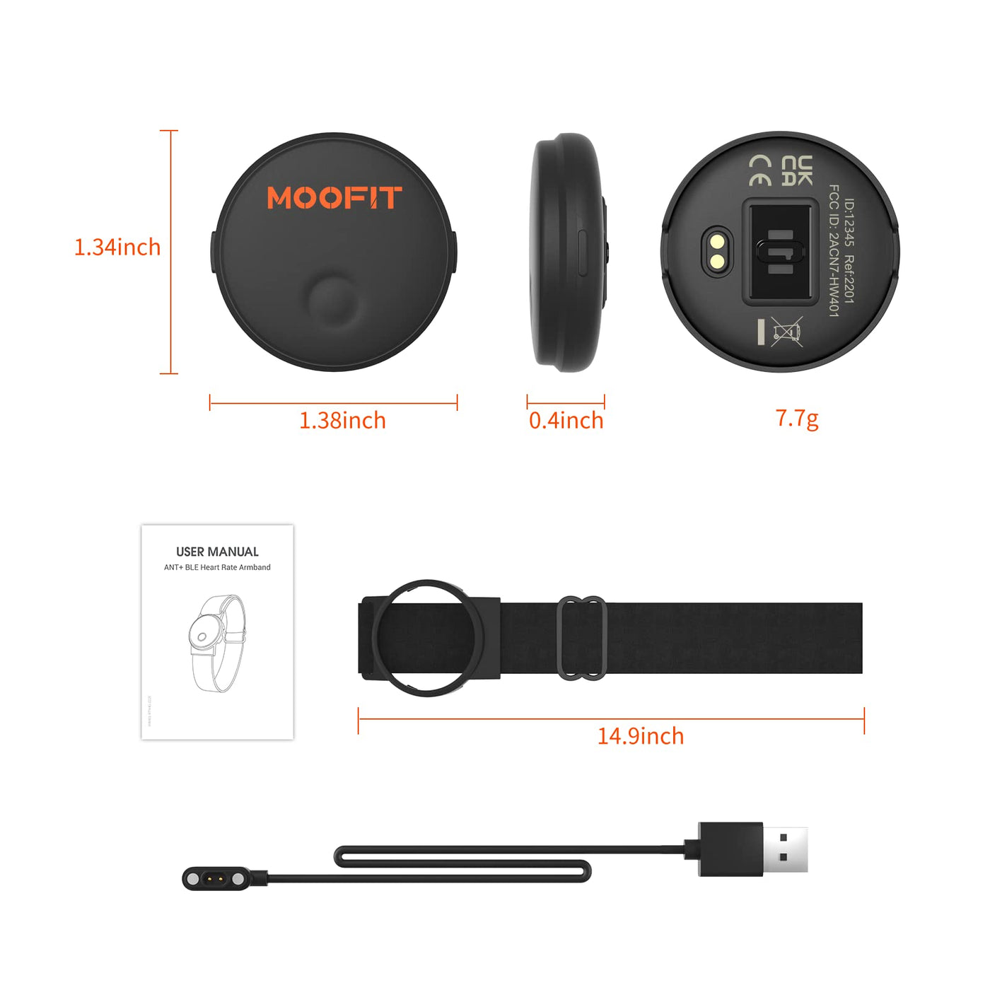 moofit HW401 Heart Rate Monitor Armband, IP67 Waterproof, Support Bluetooth/ANT+, Rechargeable Optical Heart Rate Sensor Bracelet Works with Wahoo, Strava, Elite HRV