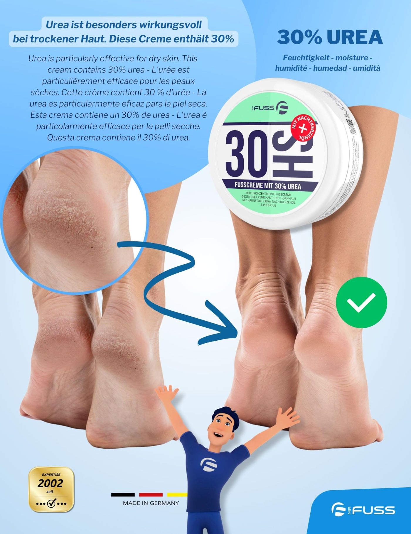 Mr. Fuss 30HS Cracked Ointment Feet Callus Removal with 30% Urea - Urea Cream for Dry Skin - Foot Repair Ointment Additionally with Propolis and Evening Primrose Oil - 200 ml 200 ml (Pack of 1)