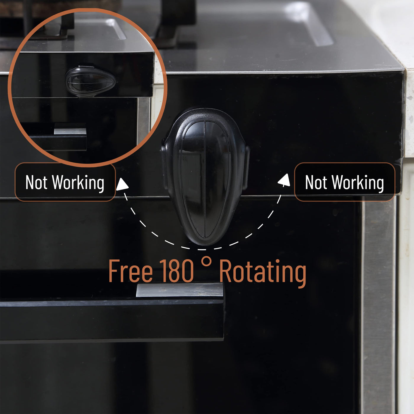 - Our oven lock features a special revolving design 180 that allows for a simple 'locking & unlocking' setting and a double button system that makes it difficult for young children to open but easy for adults to open and close with one hand.
