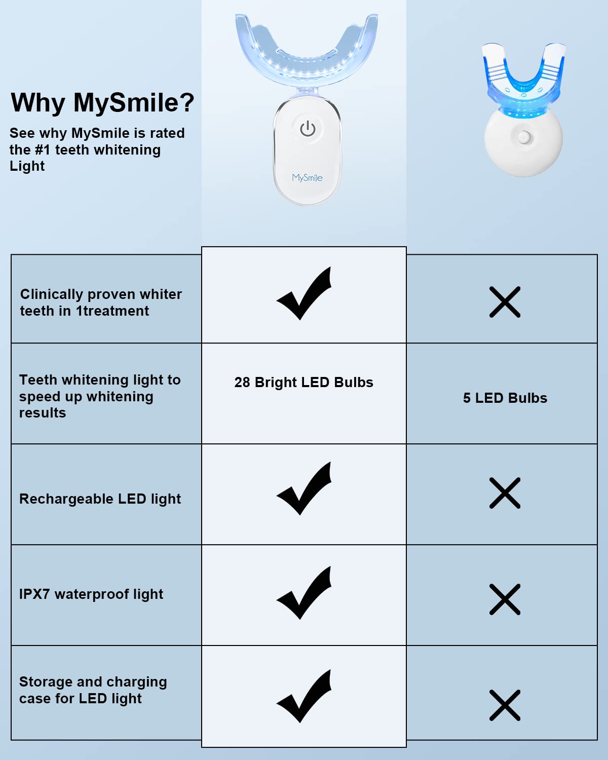 - LED LIGHT TEETH WHITENING KIT. MySmiles easy to use Teeth Whitening Device uses a fast-acting LED light and simple, Make your mouth happy with a brighter, whiter smile and achieve those tooth whitening goals with MySmiles incredible, modern, teeth whitening Light.