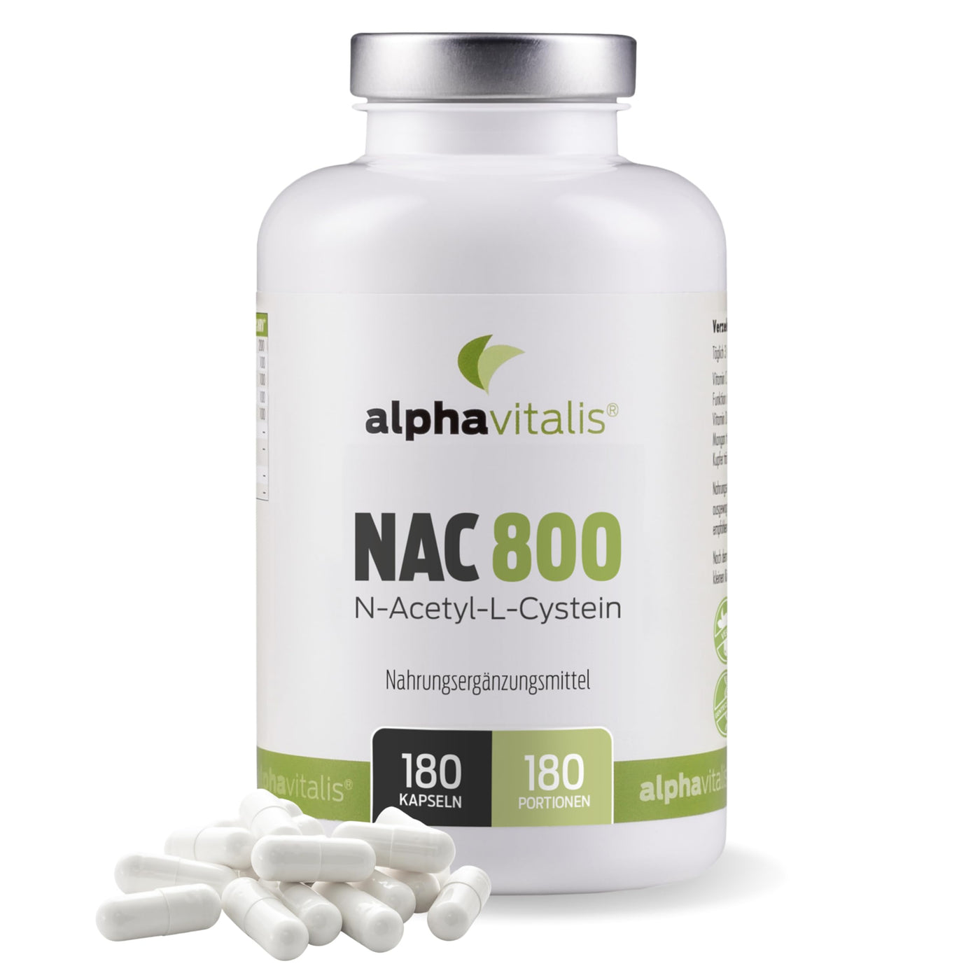 - PREMIUM NAC with 800mg NAC capsules. Alphavitalis NAC is obtained from purely plant-based sources and is not produced synthetically. It is characterized by high bioavailability and excellent tolerance. High-dose NAC capsules are completely vegan.