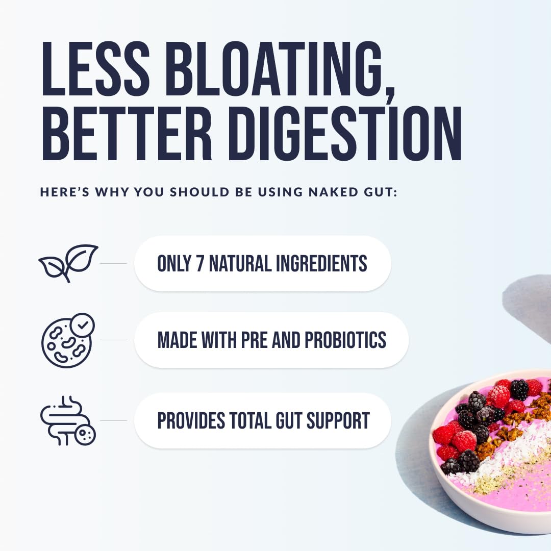 - ENHANCE GUT HEALTH: Naked Gut is a natural blend comprising seven carefully selected ingredients, intended to enhance gut health, optimize digestive function, and cultivate a healthy gut biome. It aids in reducing concerns related to the digestive system.