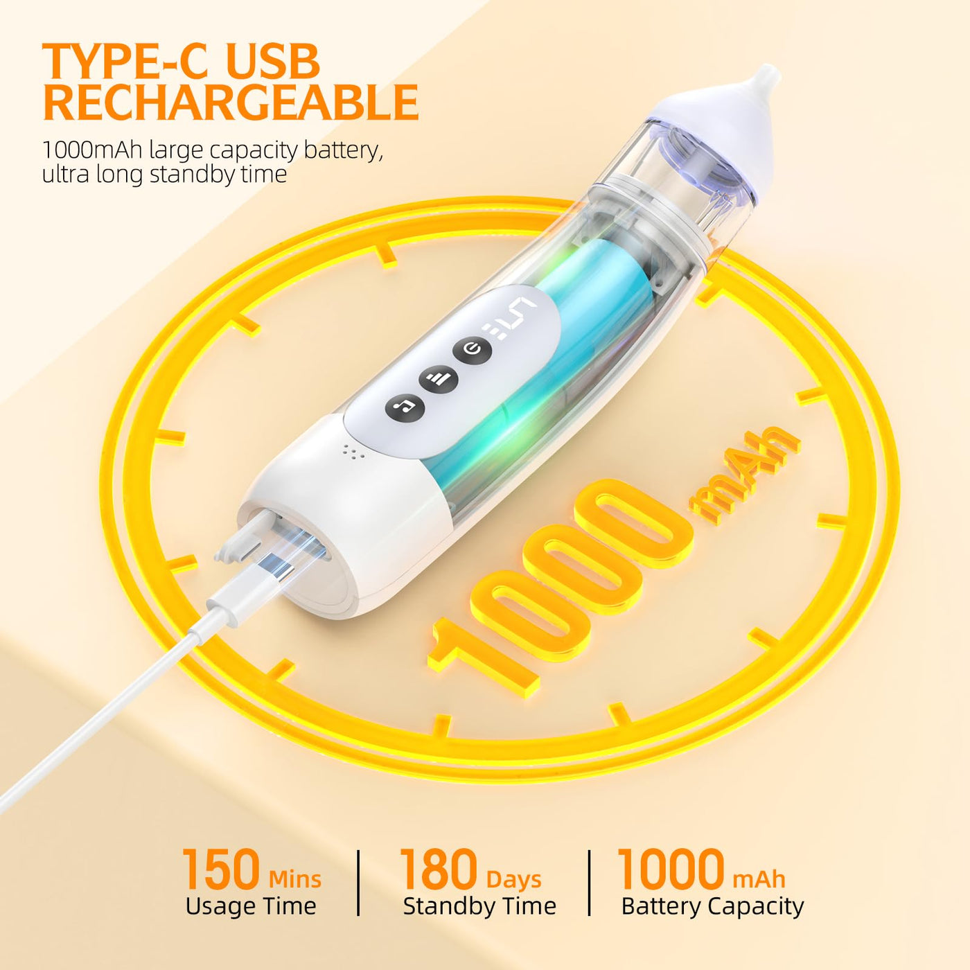 - Upgraded Battery-180 days Standby Time: the electric nose suction for baby features Type-C charging system and a powerful 1000mAh battery, which can be used continuously for up to 2.5 hours after being full charging. This nose aspirator for babies has one storage bag, so you can use it at any time and take it wherever you go, which is a perfect baby stuff gift for newborns parents.