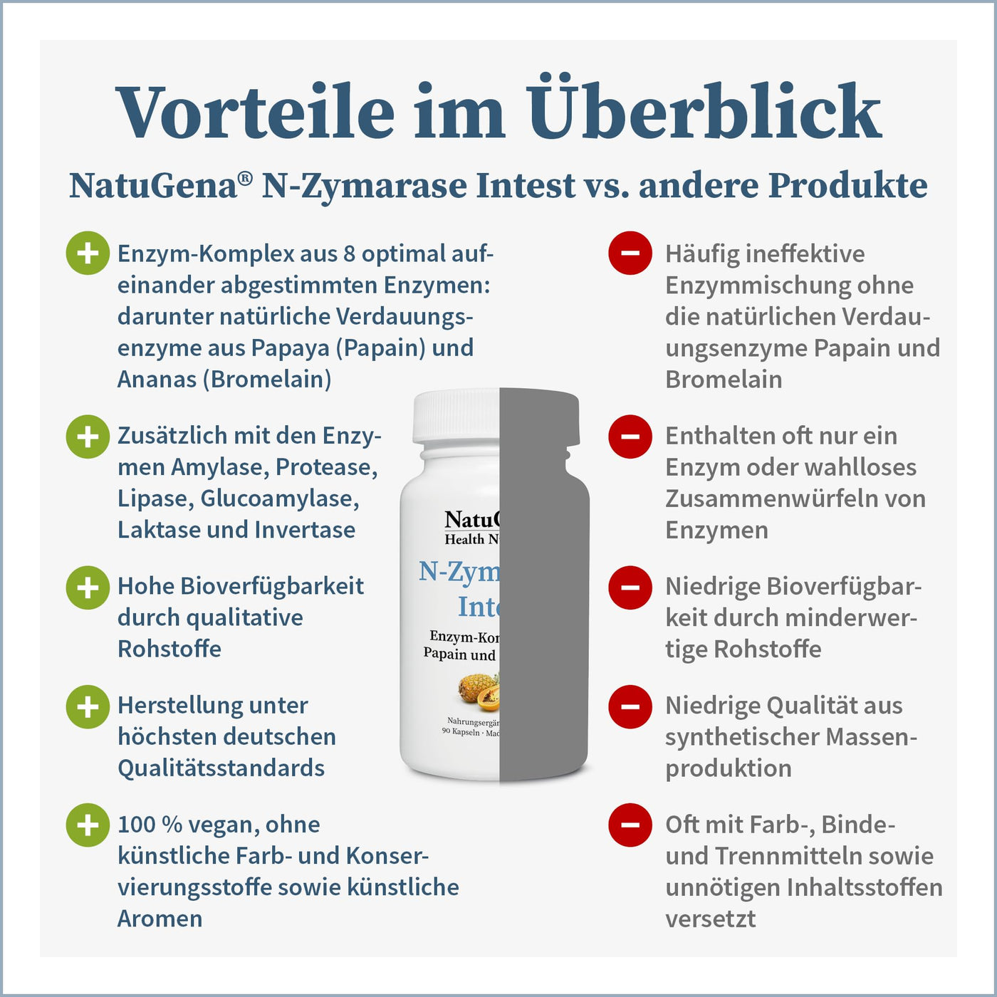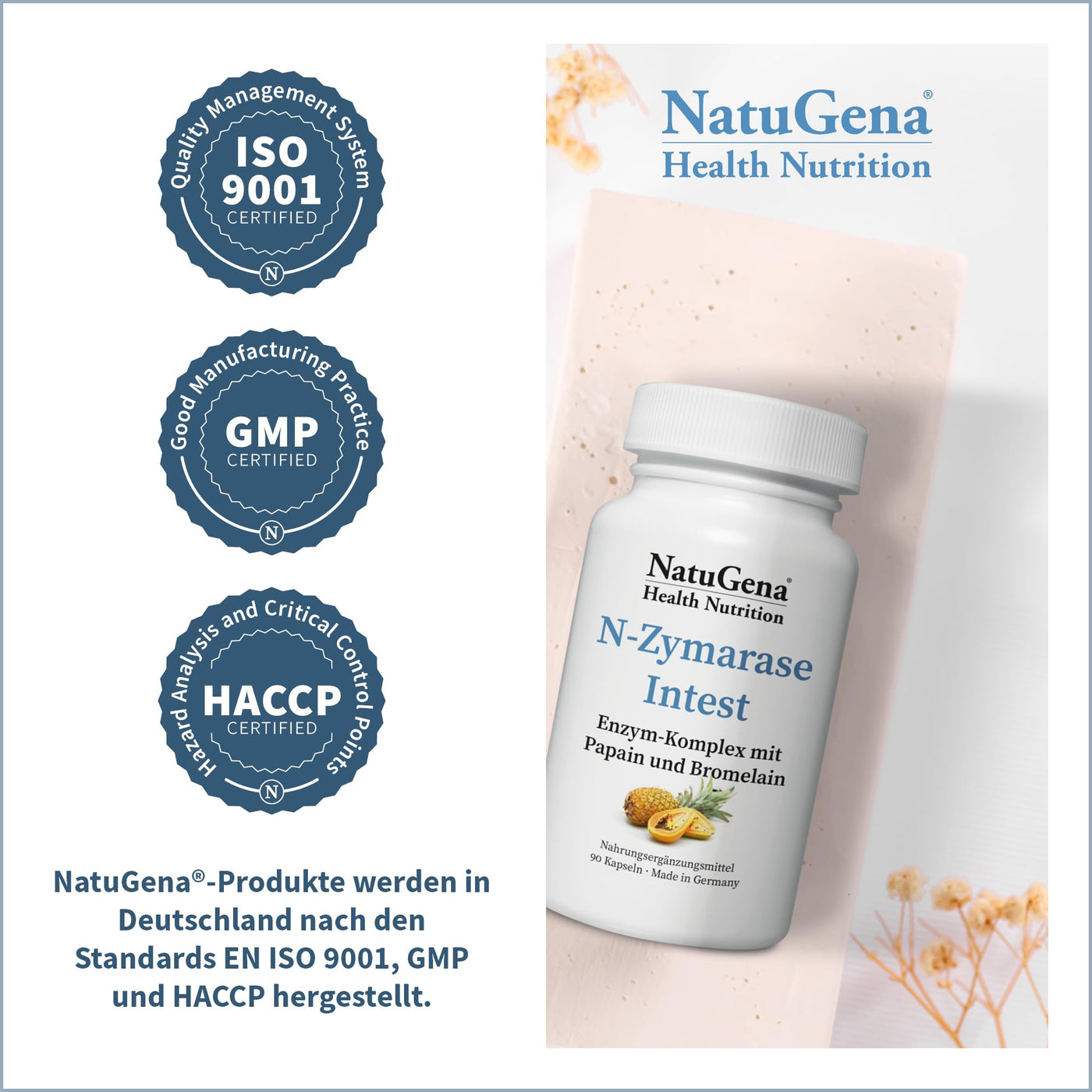 - Purity and the highest quality raw materials from German production. The NatuGena recipes are designed to maximize bioavailability by combining the pure ingredients and to use synergy effects. Scientific studies are used to determine the dosage of the individual raw materials. NatuGena: Know how NATURALNESS creates HEALTH!