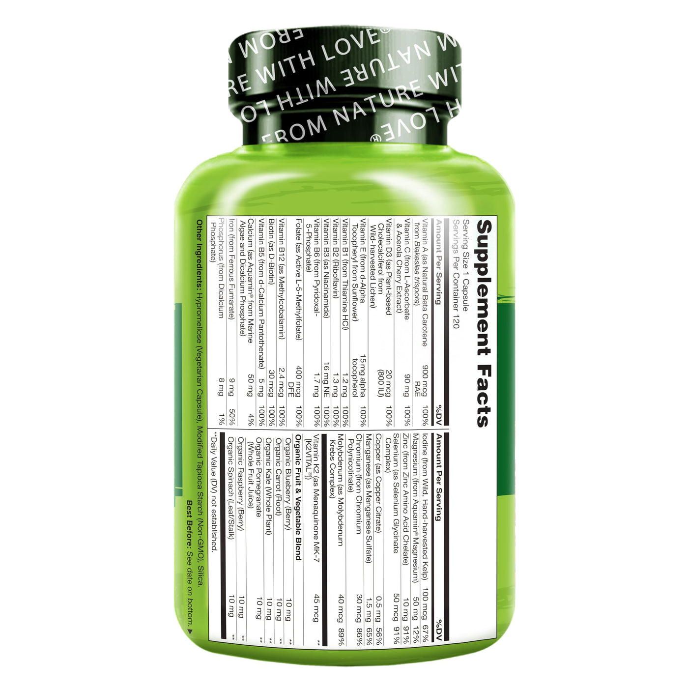 - PLANT-BASED: Featuring premium plant-based vitamins and minerals including as Vitamin D3 from lichen, Vitamin E from sunflower, plant Calcium and Magnesium from marine algae, and Iodine from kelp.