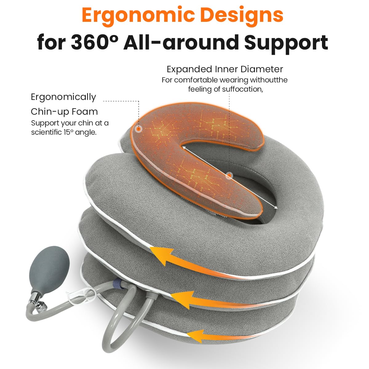 Neck Stretcher with Neck Brace,Cervical Traction Neck Device,Neck Relief Tool,Adjustable Inflatable Cervical Brace,Home Use Neck Decompression New Technology Breathable Fabric Washable(Gray)