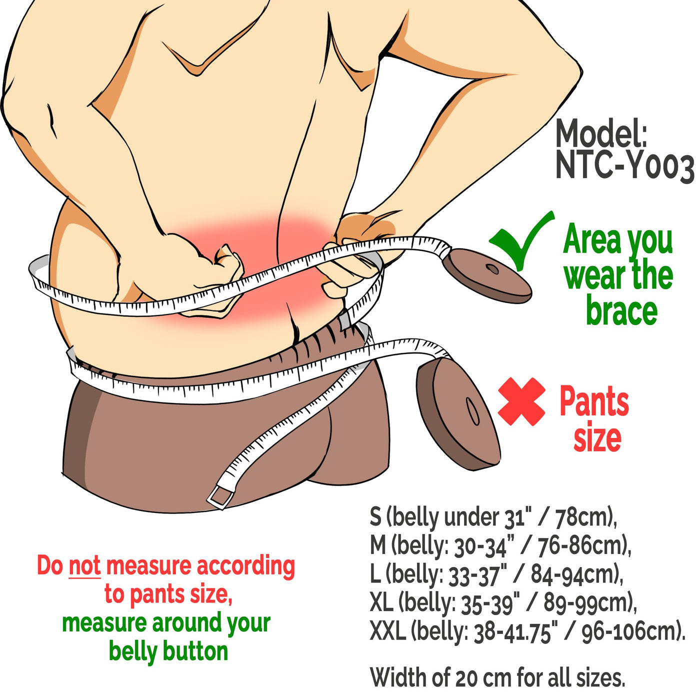 - See 2nd product picture for how to measure around the back then refer to size chart in product description to select an accurate size; Do not choose according to your pants or trousers size