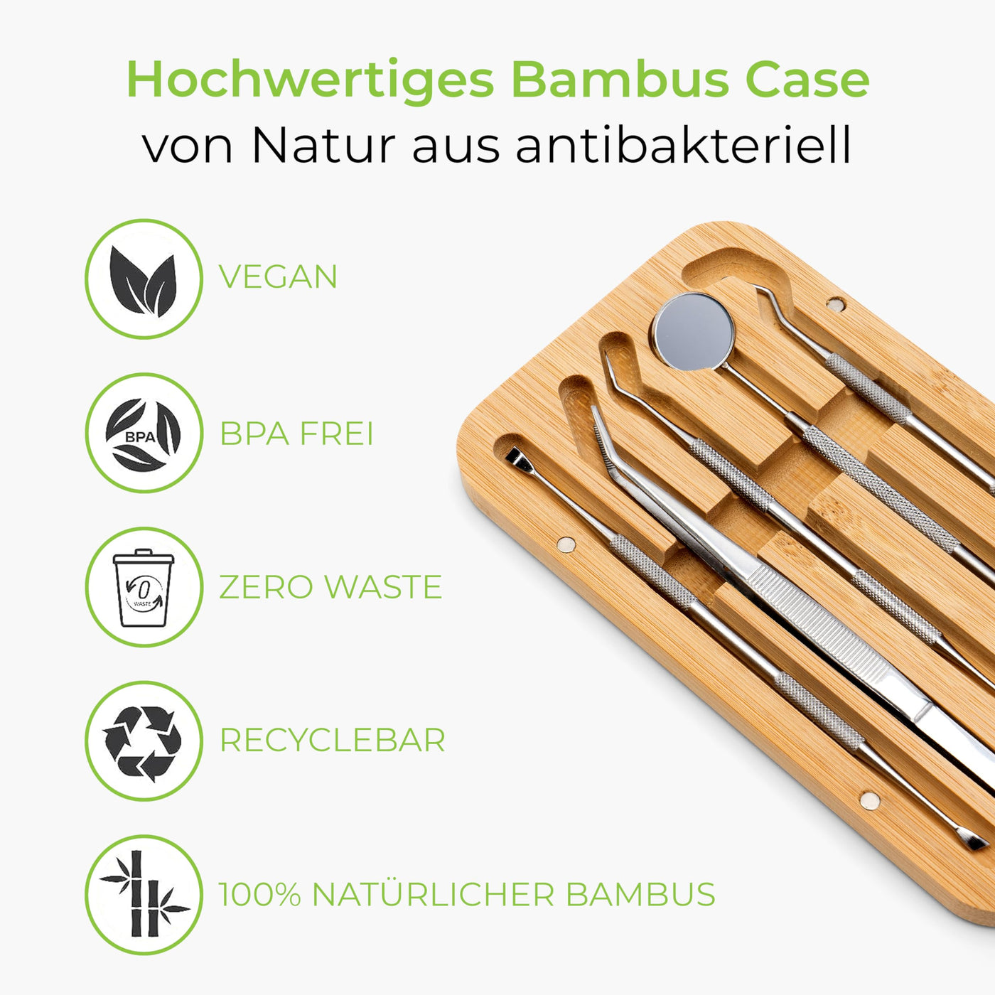 - PREMIUM STAINLESS STEEL QUALITY The Greenable dental care set made of high-quality stainless steel is ideal for maintaining your oral health and hygiene.