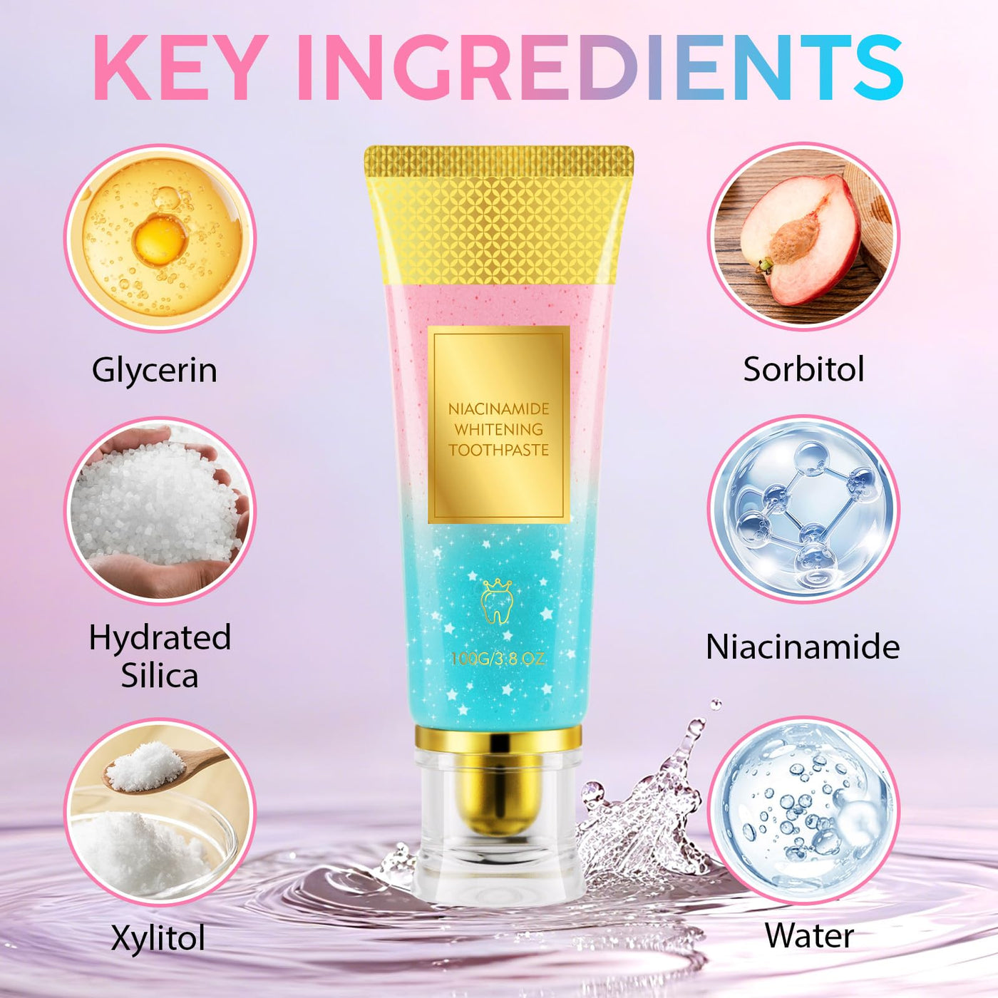 - Naturally Whiter Teeth - With the Power of Niacinamide, this advanced formula helps reduce surface stains, enhance natural whiteness, and promote gum health. Its gentle yet effective cleansing action strengthens enamel and protects against cavities, giving you a radiant, healthy smile.
