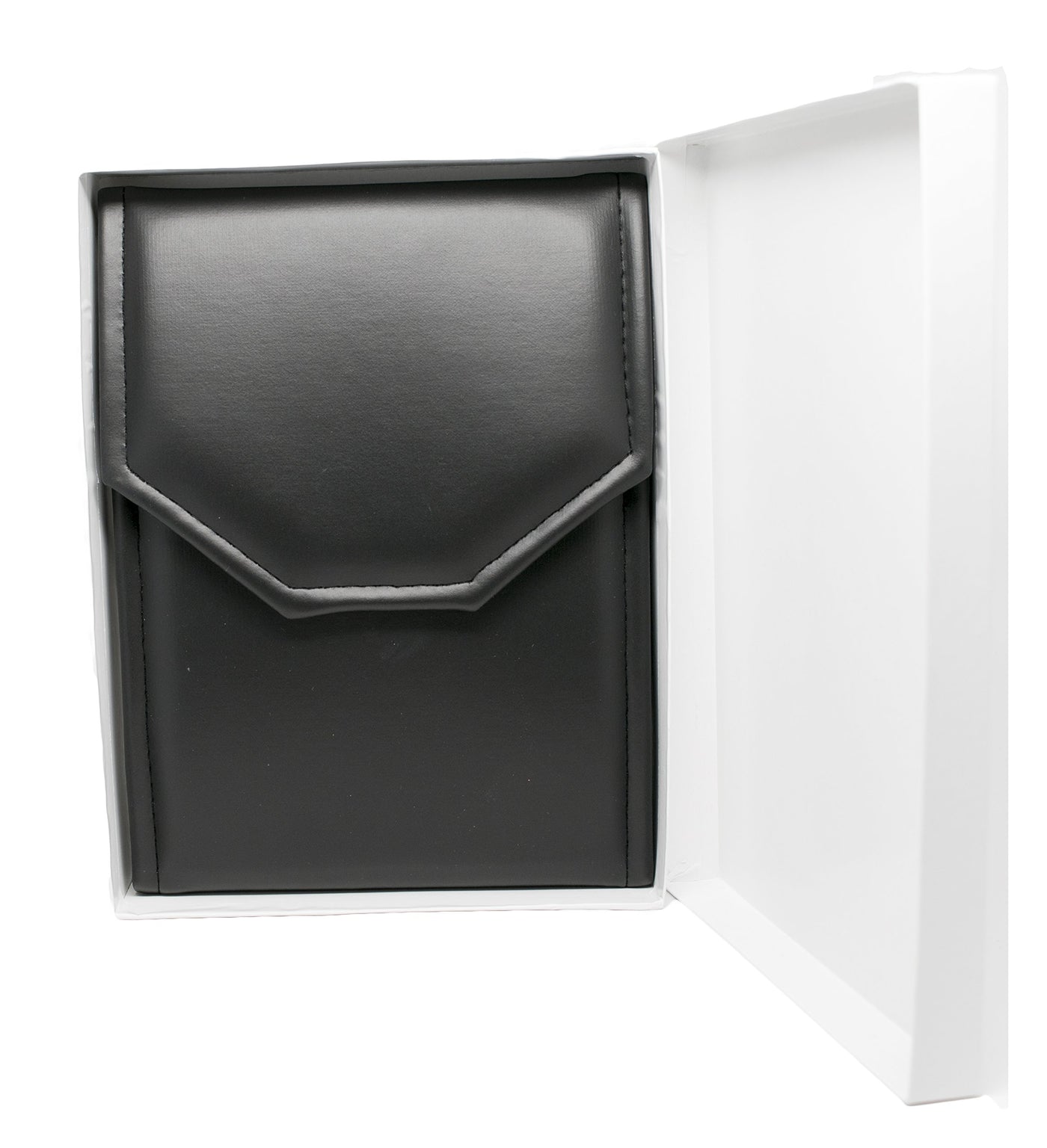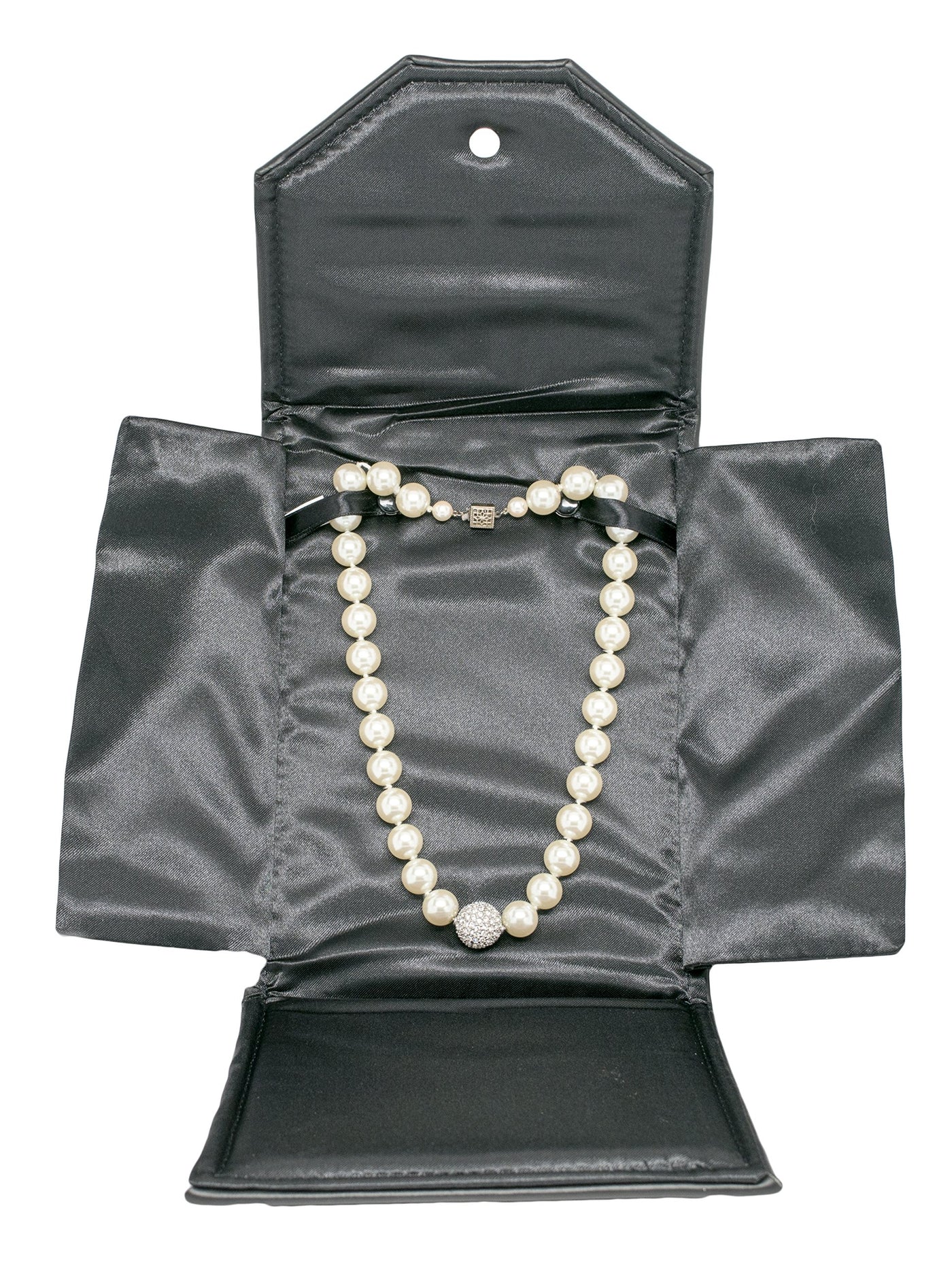 Novel Box Premium Large Black/Black Stitched Leatherette Pearl/Omega Necklace Folder + Custom NB Pouch