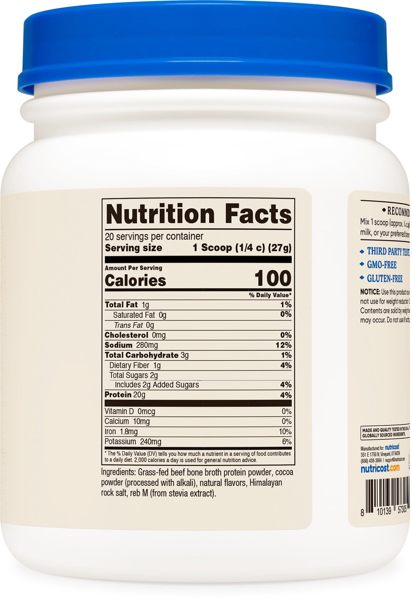 Nutricost Beef Bone Broth Protein Powder Chocolate (20 Servings) - Gluten-Free, GMO-Free