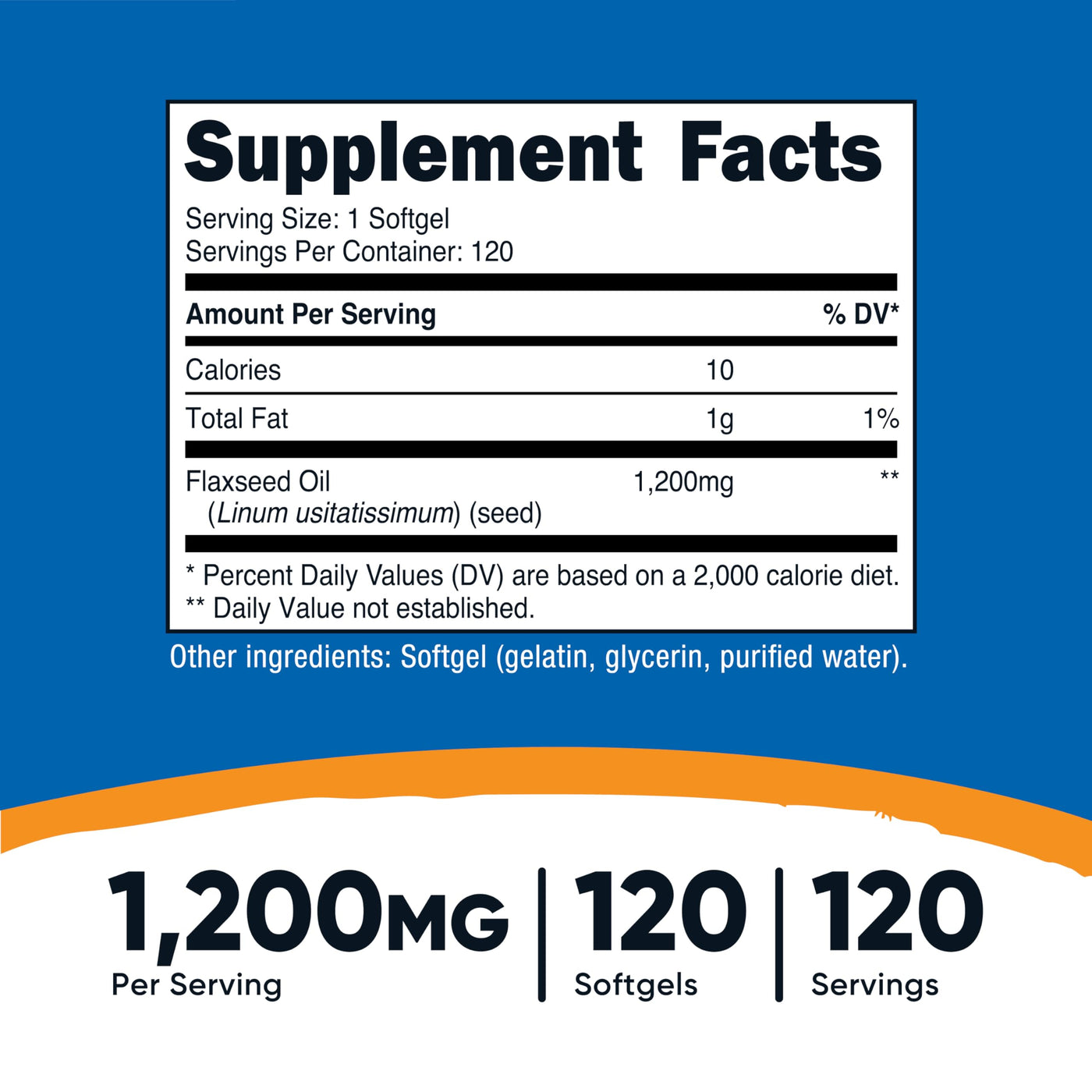 Nutricost Flaxseed Oil 1200mg, 120 softgels - GMO-Free, Gluten-Free