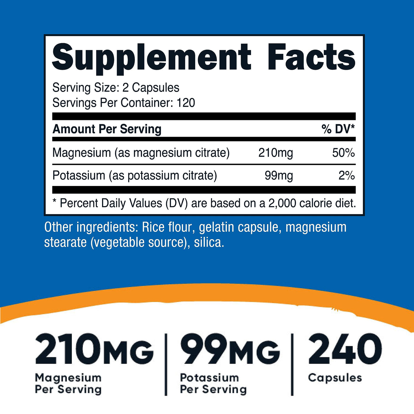 Nutricost Potassium (99 mg) Magnesium (210 mg) Citrates, 240 Capsules - Non-GMO, Gluten Free Unflavored 240 Count (Pack of 1)