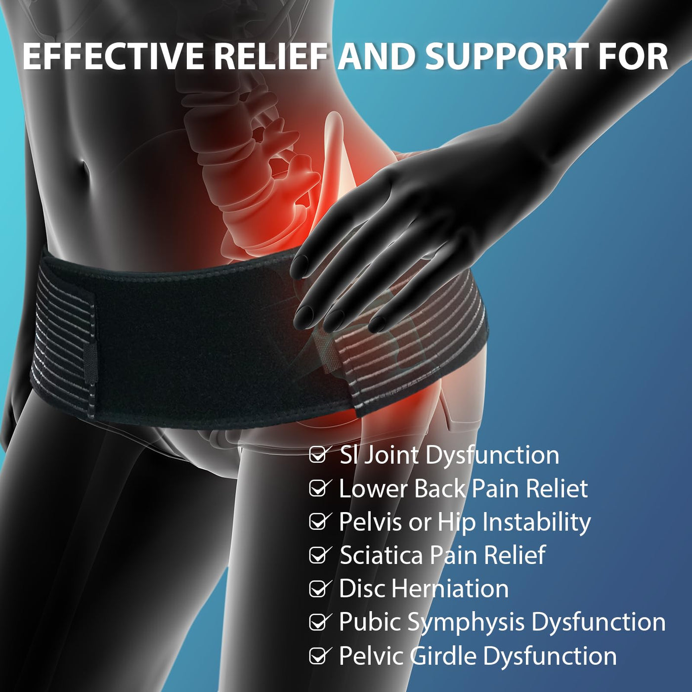 - Efficient Sacroiliac Support - Achieved by embracing your natural shape with compression therapy. The Nvorliy SI joint belt is crafted to contour your sacroiliac naturally, providing compression therapy support. Experience relief from sacroiliac pressure and stress while promoting enhanced blood circulation.