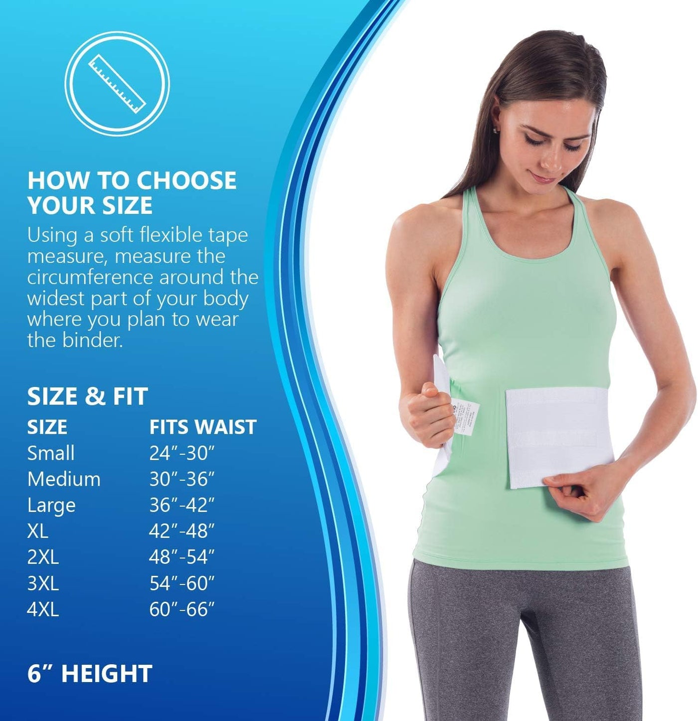 - HOW TO CHOOSE YOUR SIZE: Using a soft, flexible tape measure, find the circumference around the widest part of your body where you plan to wear the binder. Wear it on top or under your clothing