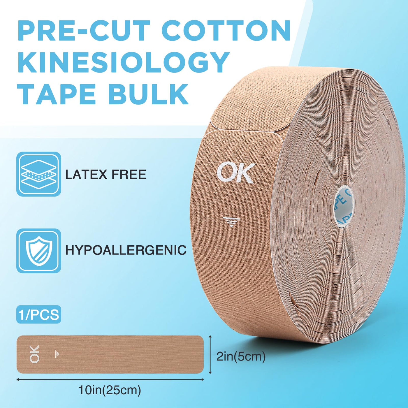 - Skin-friendly and Latex-free: OK Tape kinesiology tape is made from high-quality hypoallergenic materials to minimize the risk of skin irritation, itching, and blisters.