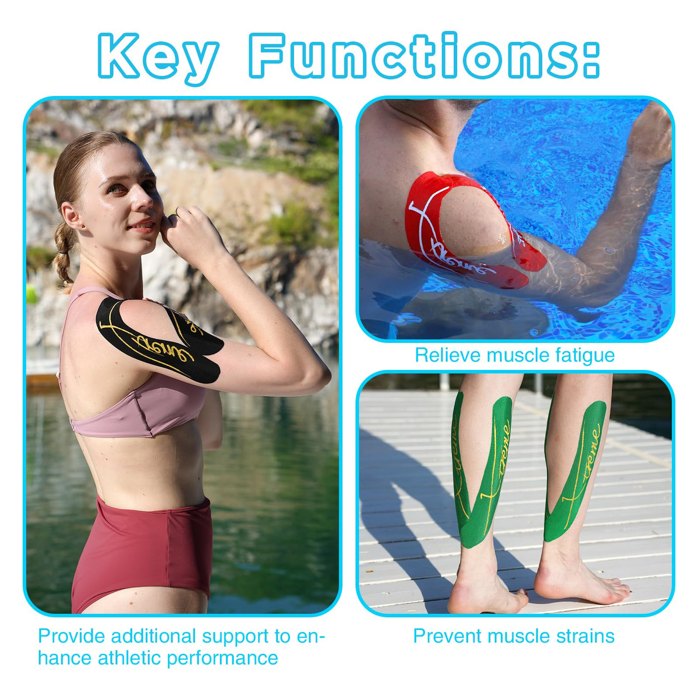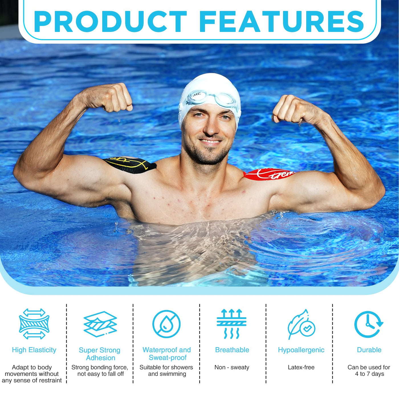 - Outstanding Waterproof Performance: Xtreme Synthetic kinesiology tape innovative waterproof formula ensures that the muscle tape adheres closely during water sports such as swimming and surfing, providing long-lasting and stable support.