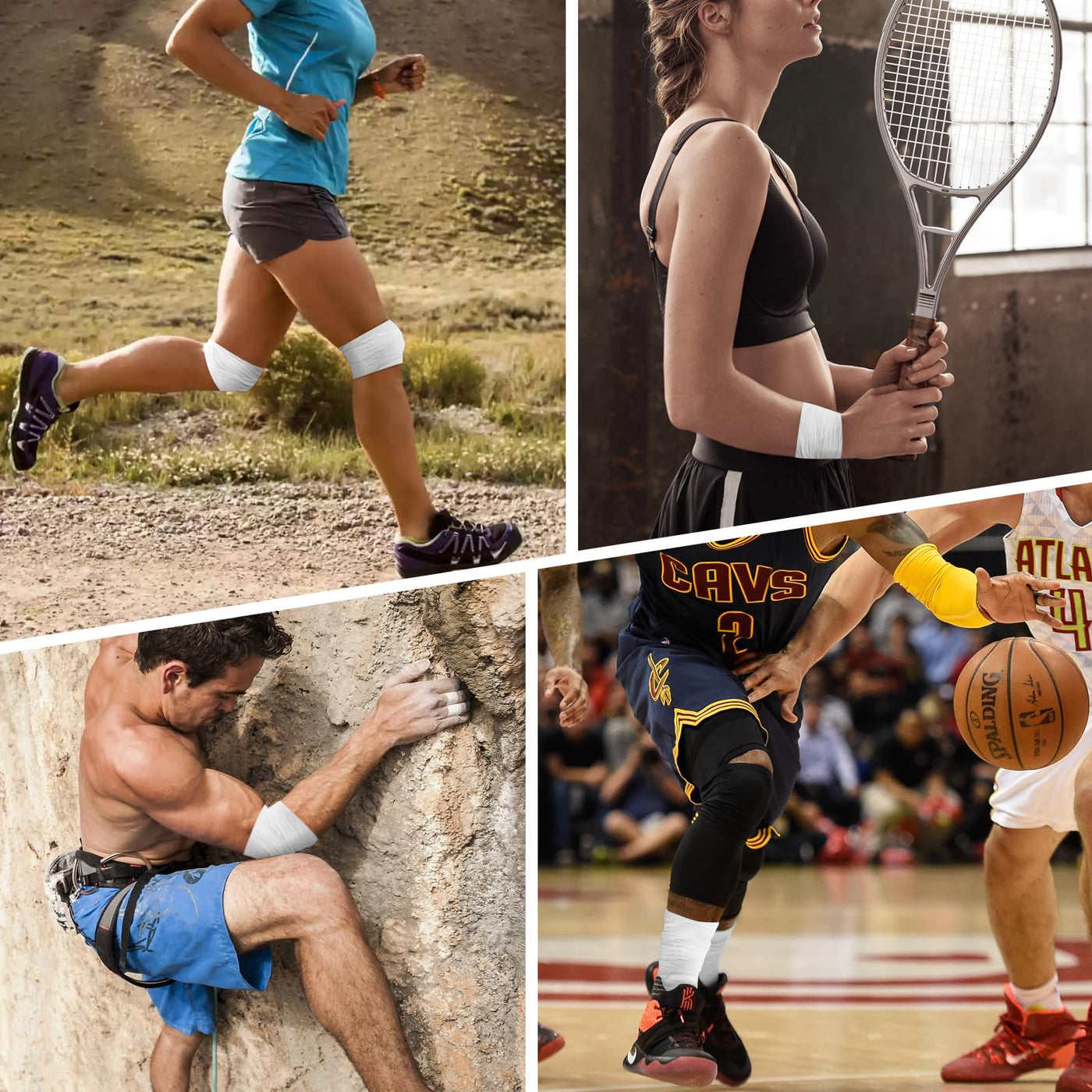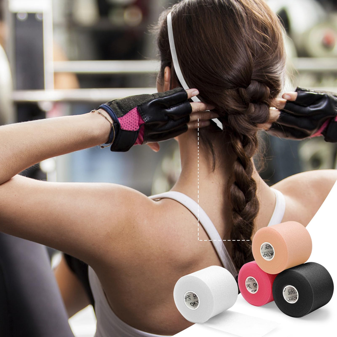 - WIDE APPLICATION - Pre wrap athletic tape provides a protective barrier between the skin and the sports white patch, effectively preventing muscle strains, can be wrapped around wrists, ankles, knees, elbows and other parts. It can also be used as a hair band, hair rope, instead of clips and rubber bands.