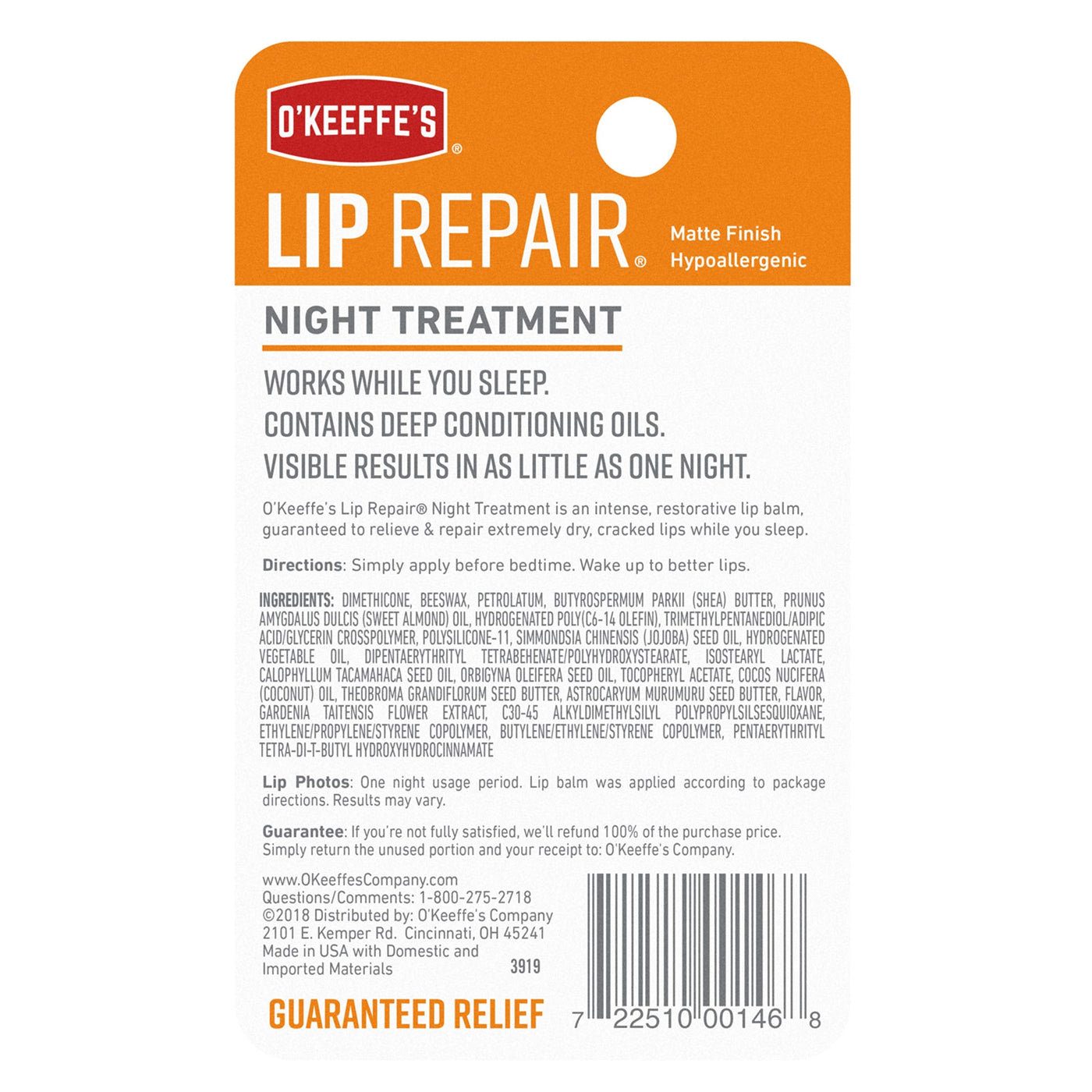 - O'Keeffe's Lip Repair Night Treatment works while you sleep