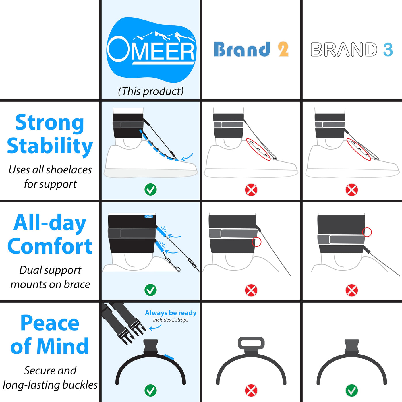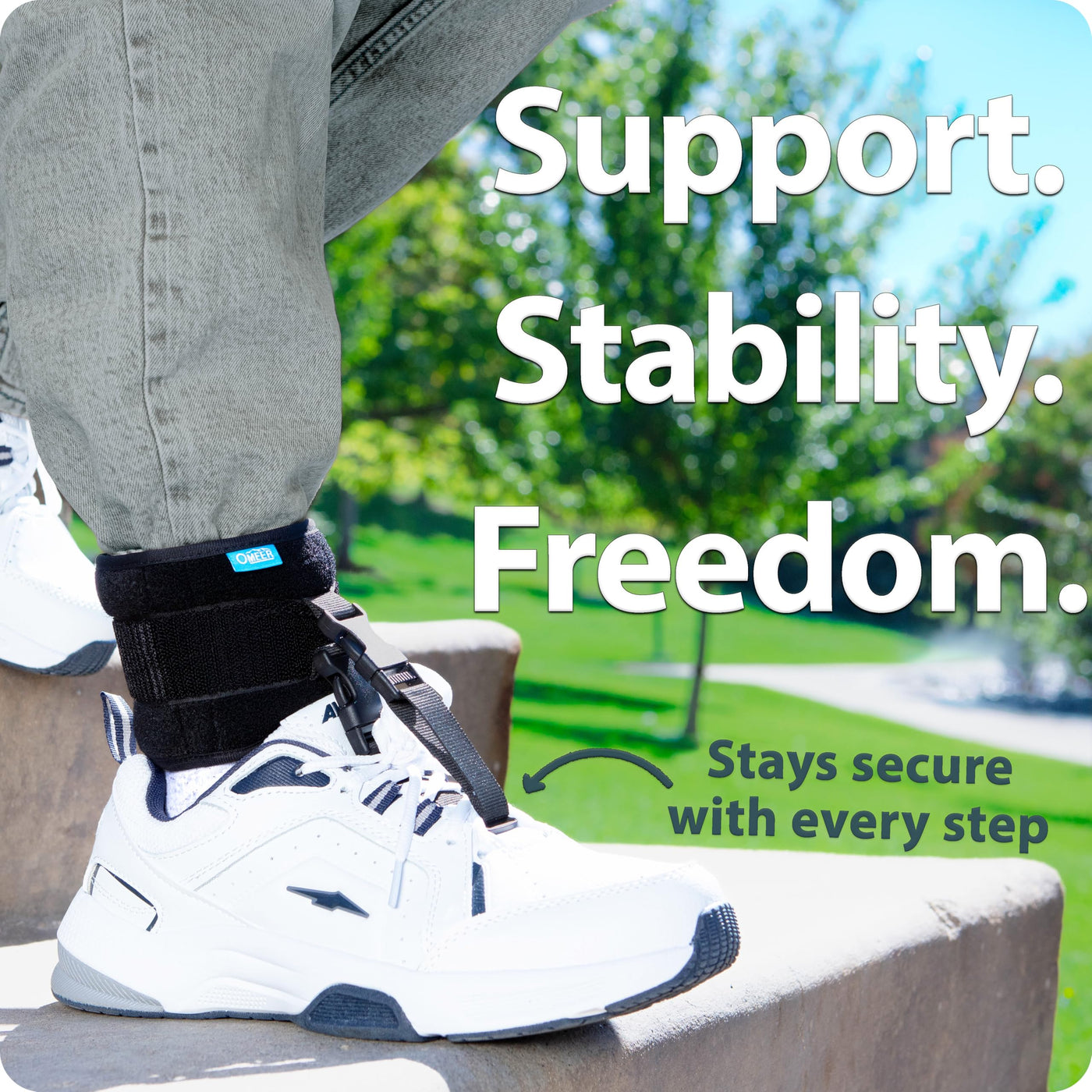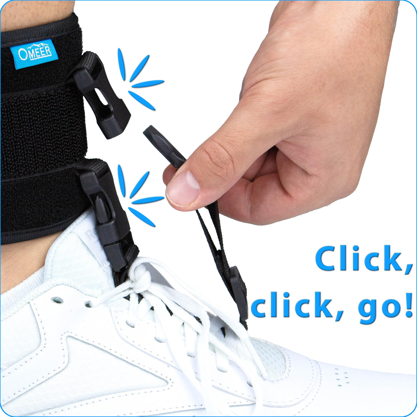 - ALL-DAY SUPPORT - Our ankle foot orthosis (AFO brace) meets your changing needs throughout the day. Wear it with your work shoes, and then switch to your tennis shoes when you get home. All without having to remove the support straps. Just click-click-Go!