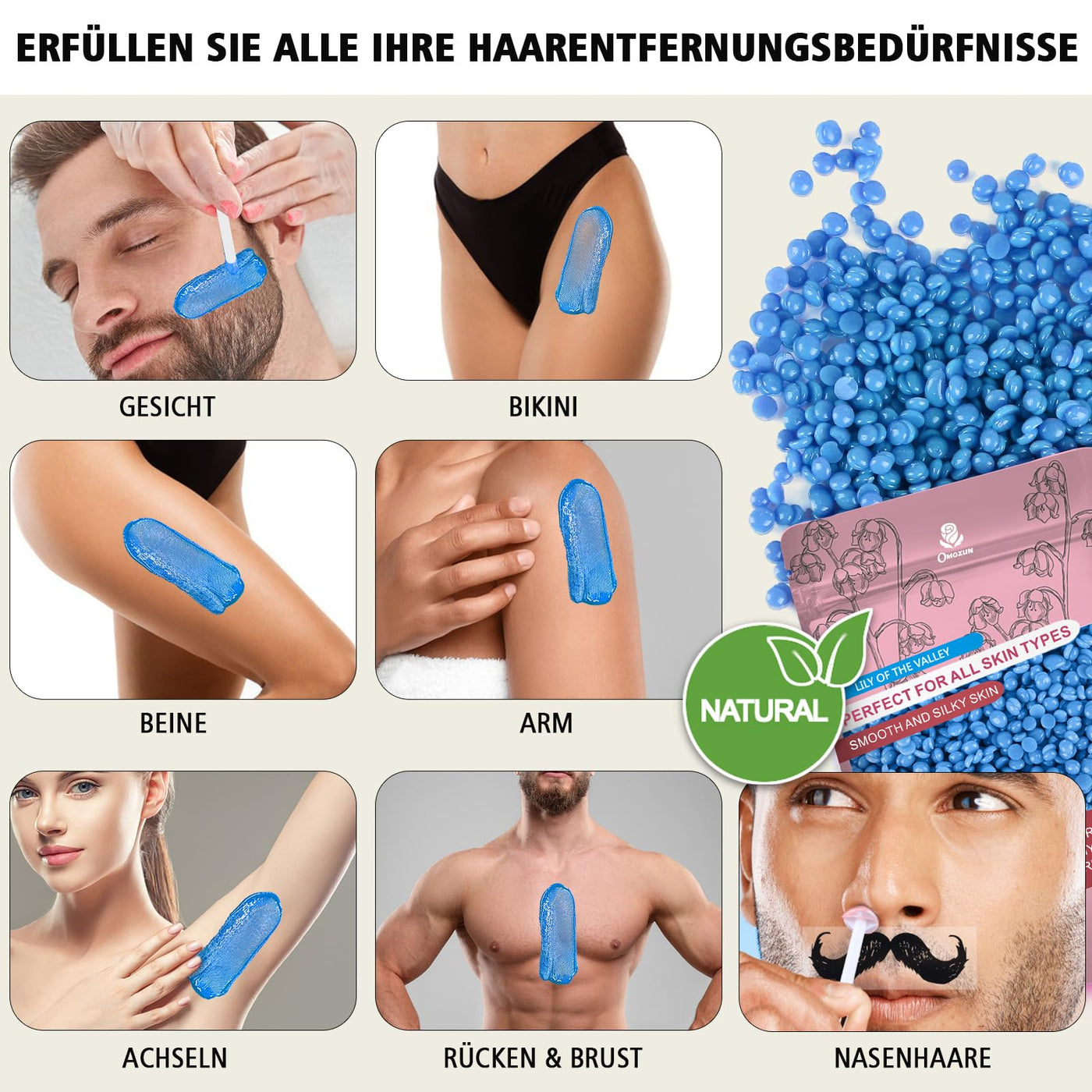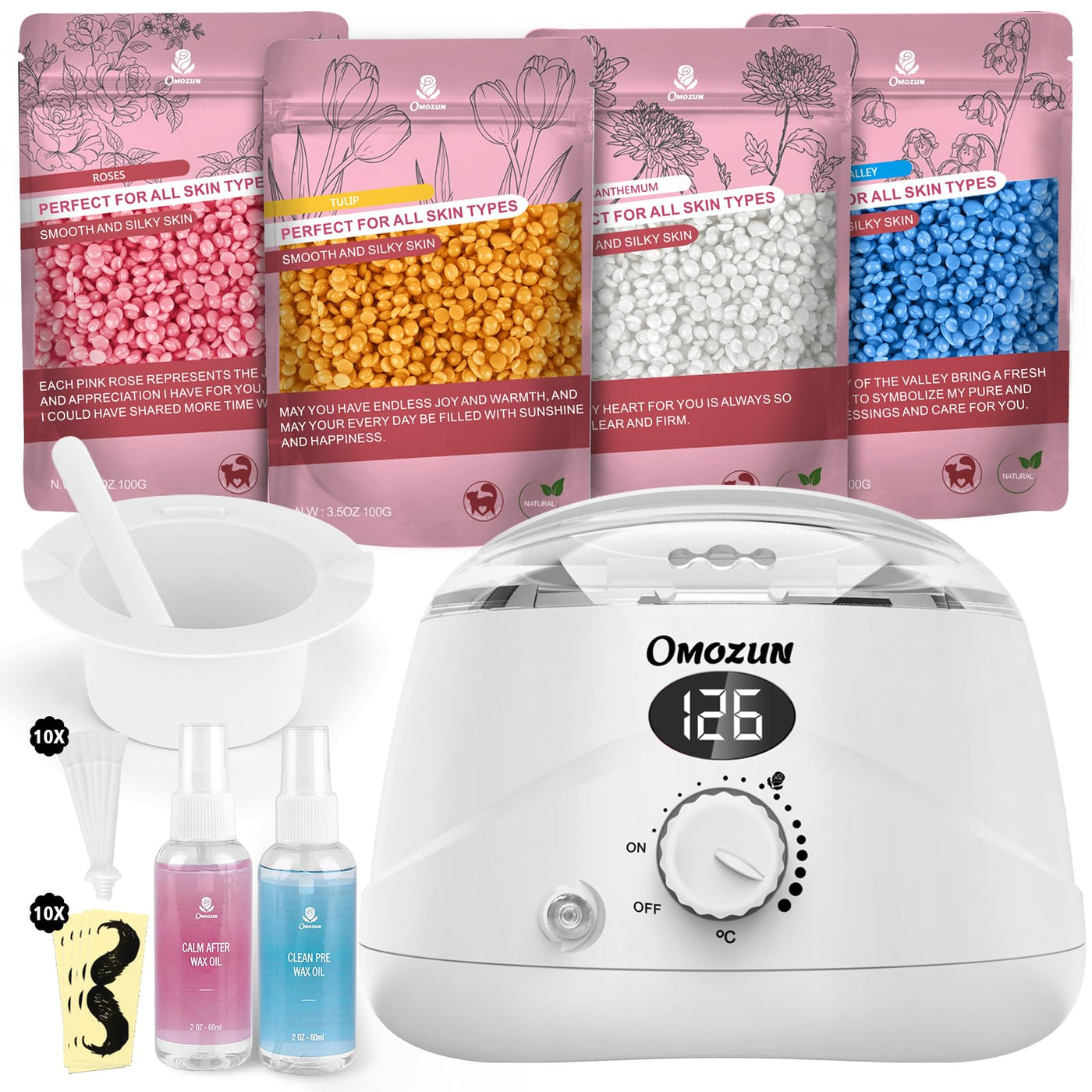 - FOR ALL YOUR HAIR REMOVAL NEEDS: The OMOZUN waxing set effectively removes unwanted hair from all over the body. Wax machine ideal for bikini, armpits, nose hair, legs, back. Enjoy smooth skin and show your sexy charm
