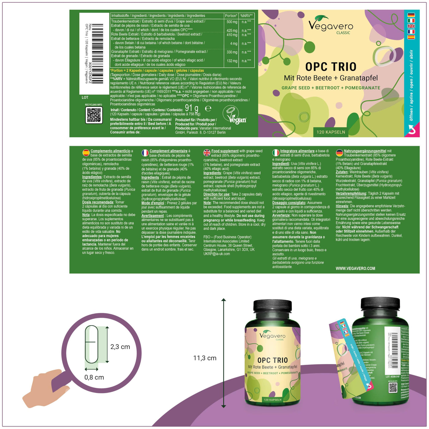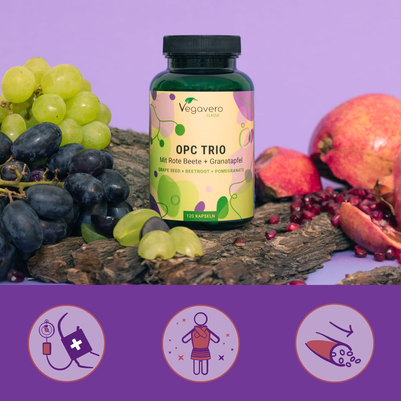 OPC Trio | High-dose Italian grape seed extract | With pomegranate & beetroot extract | Antioxidants | Vegan & No Additives | 120 capsules | German production of Vegavero®