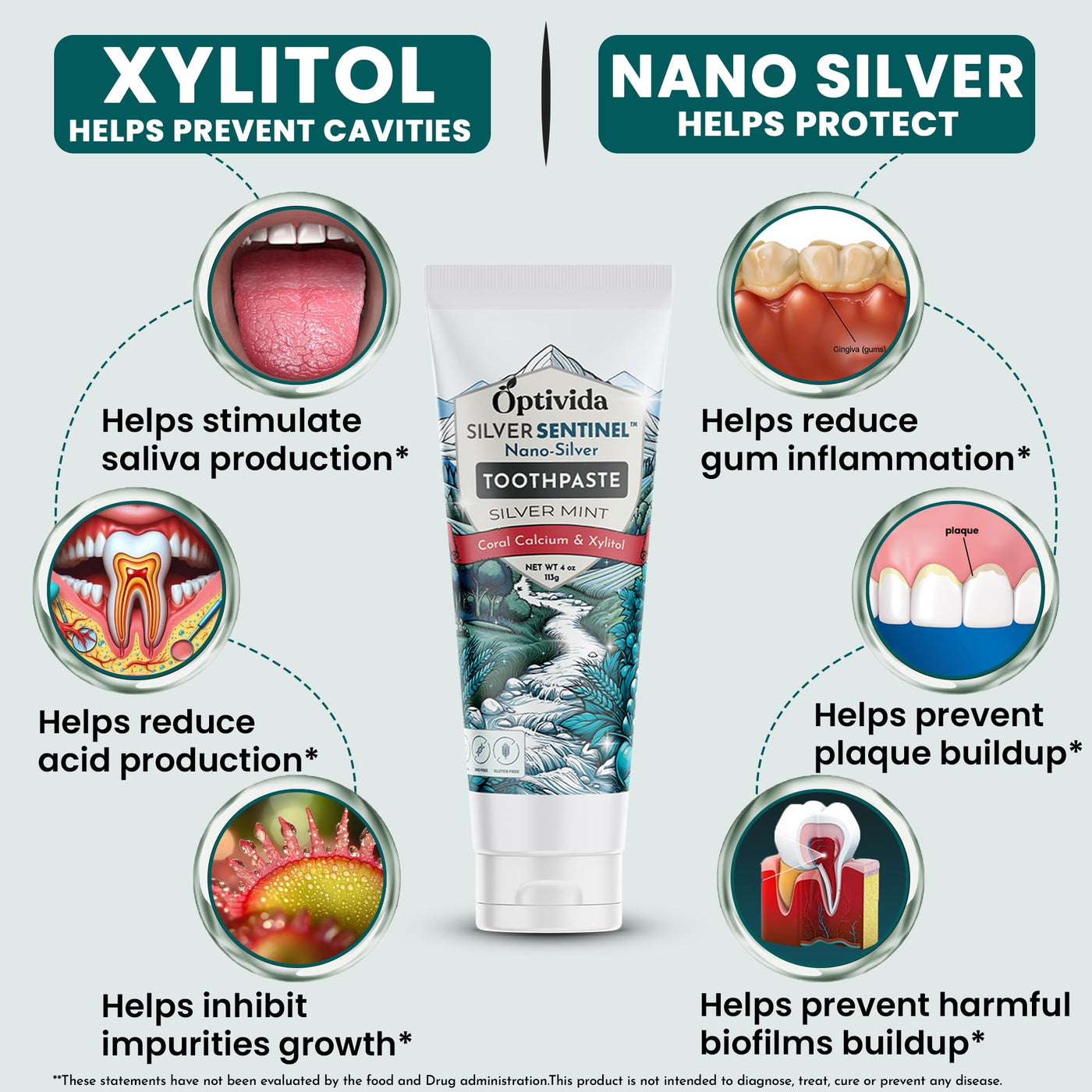Optivida (Fluoride Free) Colloidal Silver (20ppm) Infused Xylitol Toothpaste for Adults & Kids. Anti-Cavity*, Anti-Plaque* Coral Toothpaste with Spearmint Oil for Gum Health & Teeth whitening - 4oz 4 Ounce (Pack of 1)