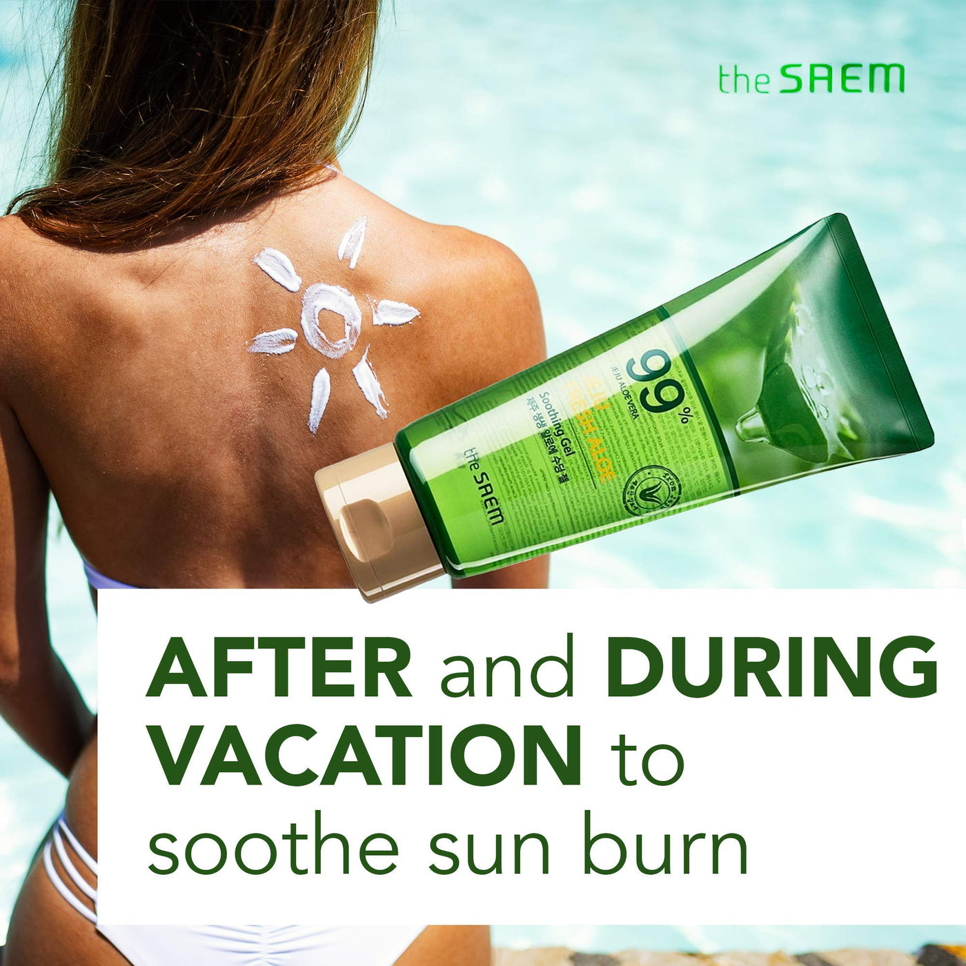 - NATURE'S INGREDIENT - 99% of The Saems Aloe soothing gel is made with the Organic Fresh Aloe Vera from Jeju Island. Aloe is celebrated for its healing and rejuvenating properties. It has anti-aging benefits due to the antioxidant Vitamins A, C, and E, amino acids and enzymes.