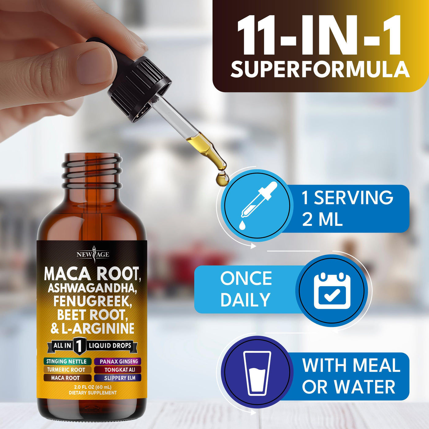 Organic Maca Root Liquid Drops with Ashwagandha, Nettle, Fenugreek, Beet Root and L-Arginine Liquid Multivitamin for Women and Men (1)