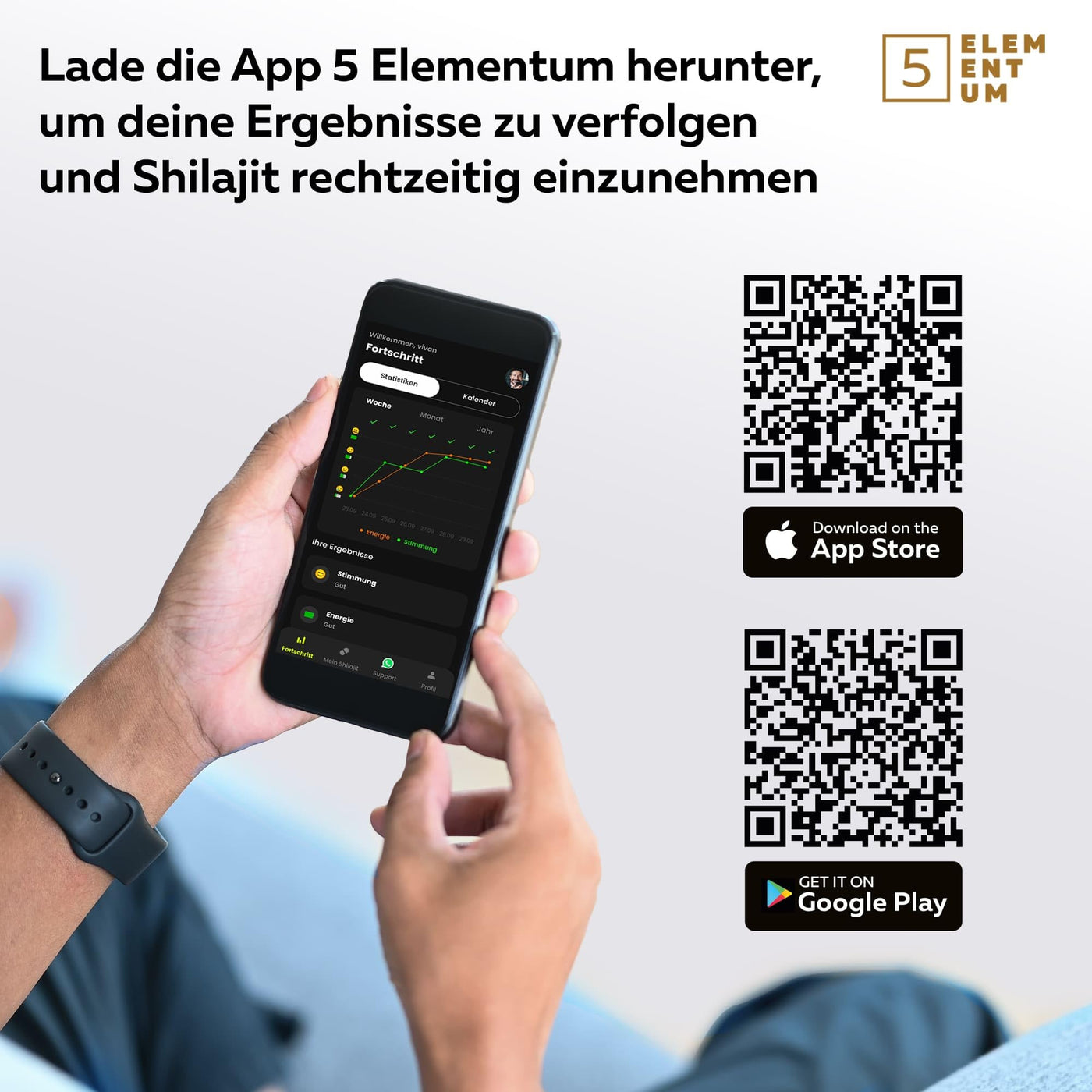 Original Shilajit Resin with 24K Pure Gold – 25g | 82% fulvic acid | High dosage & of course | With the 5 Elementum app for optimal control