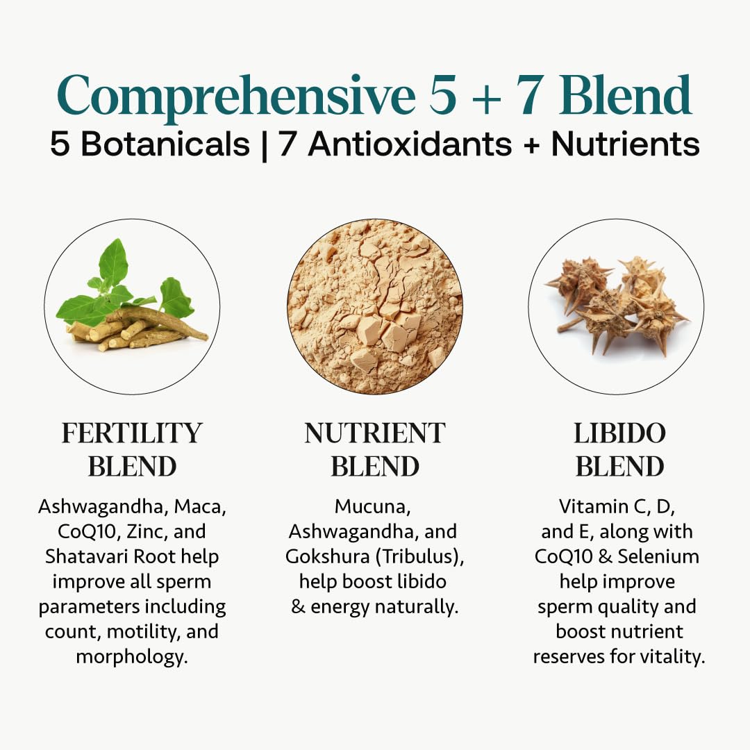 - MODERN AYURVEDA & SCIENCE-BACKED INGREDIENTS: Combines modern Ayurveda with science-backed pre-conception vitamins and antioxidants like Zinc, CoQ10, Selenium to support male reproductive health.