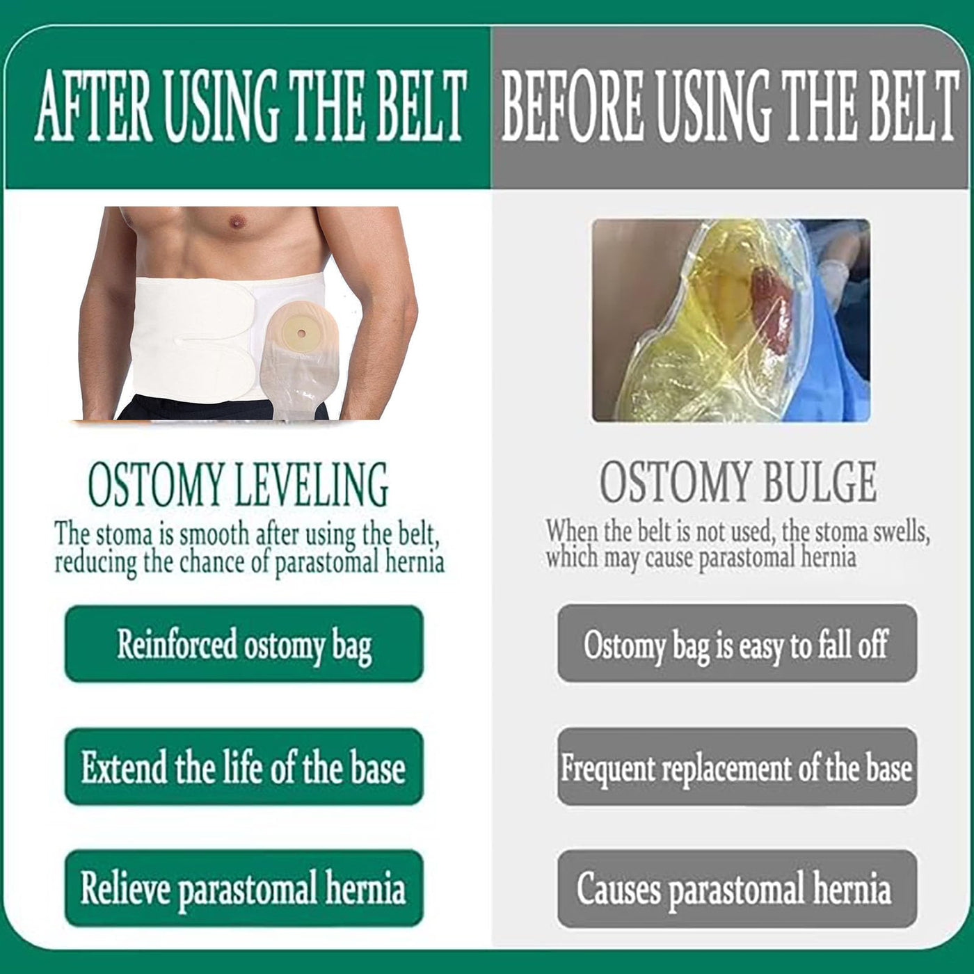 - Prevent parastomal hernia and hernia.The use of a ostomy belt also serves to reinforce the stoma bag, prevent dislodgement and prolong the life of the sump.Provides strong support and protection for the abdominal wall and Stoma.