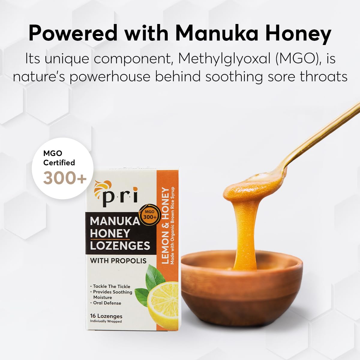 P.R.I Manuka Honey Lozenges with Propolis, Soothing Cough and Throat Drops, MGO 300+ Certified, (Lemon, 16 Count/2 Pack)