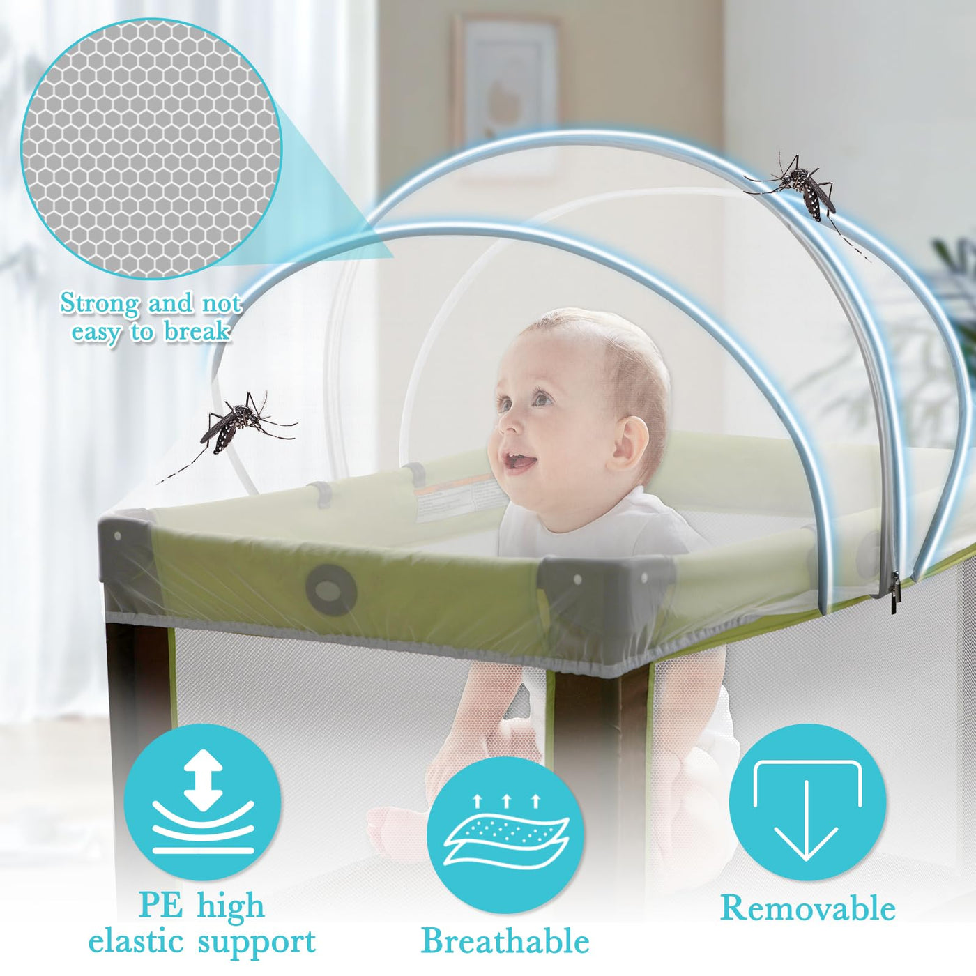 DOUBLE FIXED:This pabellones para cunas de bebe has a two-way zip design with elasticated edges to adjust to different sizes and six padded hooks to secure it to the bassinet without falling off. Mosquitero para cuna fits most bassinets and is retractable for easy removal Quality Materials:The mosquitero para cuna de bebe mosquito net made of high quality mesh, mosquito net for baby offers 360° protection without compromising air circulation, ideal for all parents Easy to Carry:The mosquito net for crib features a lightweight and compact design for easy storage and travel, making it the perfect companion for any journey, and the pack and play cover provides a safe space for your little one to play in