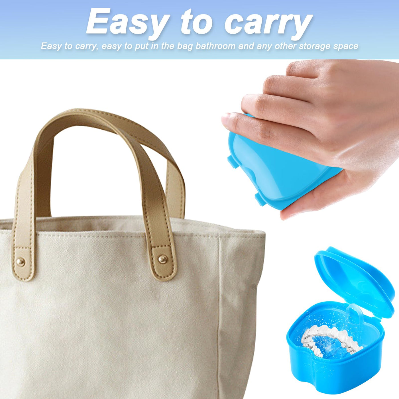 - Portable Design The dental splint box is small and lightweight, easy to carry and use on the go, and can be easily stored in a backpack or suitcase to avoid accidental damage to the dentures. Suitable for families, travel, business trips, camping and other occasions.