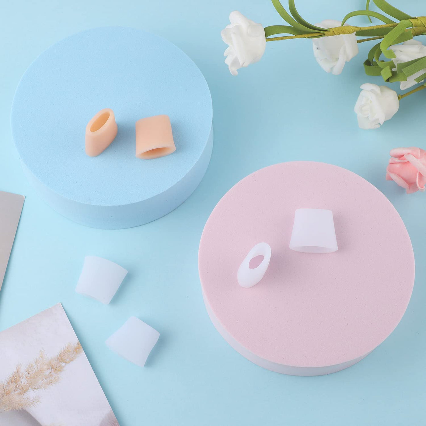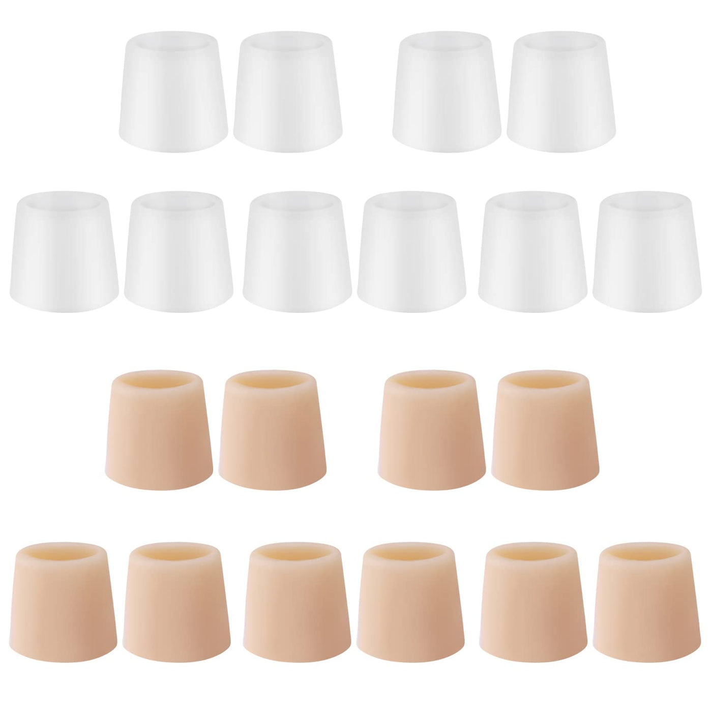 Pack of 20 toe caps protection, silicone small toe protection, toe protectors, toe pads, reduce friction (skin colour, white).