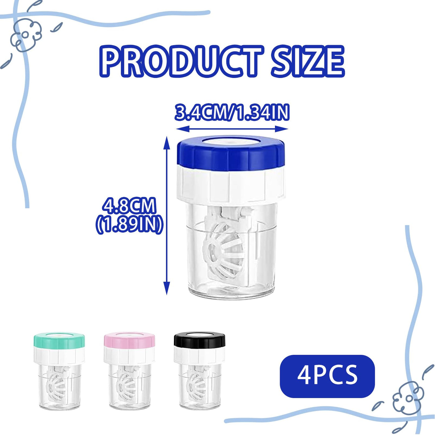 4 pieces contact lens containers, contact lens liquid, contact lens container washing system, rotating contact lens cleaning container for daily use at home travel