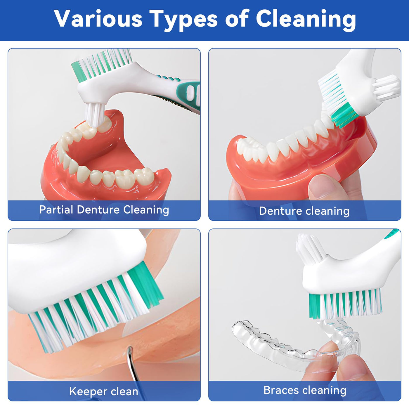 - Ergonomic anti-slip handleIntelligent design, excellent comfort, the toothbrush handle of our denture cleaning brush is the perfect size, curved silicone handle makes it easy to grip