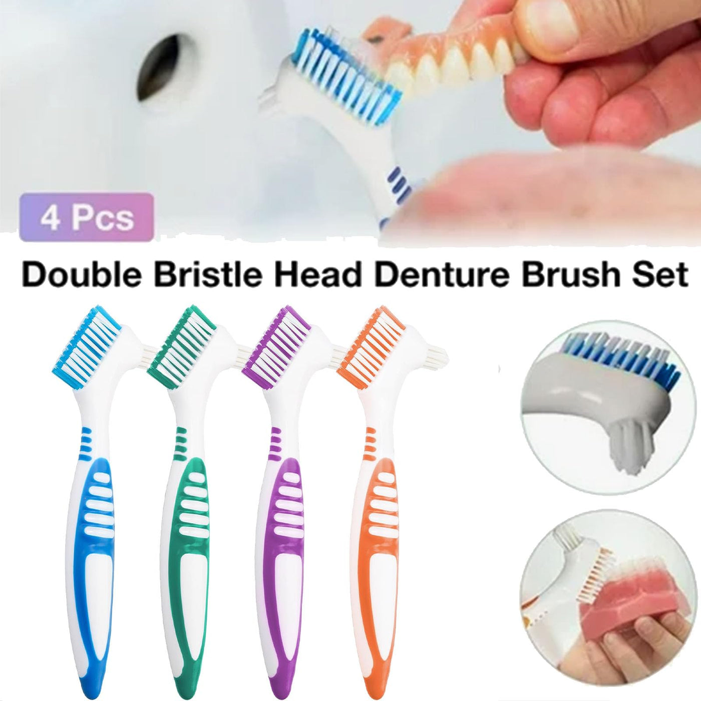4 pieces toothbrush, false teeth brush toothbrush, denture toothbrushes cleaning brush, denture brush with soft bristles, double-head toothbrushes for cleaning artificial teeth