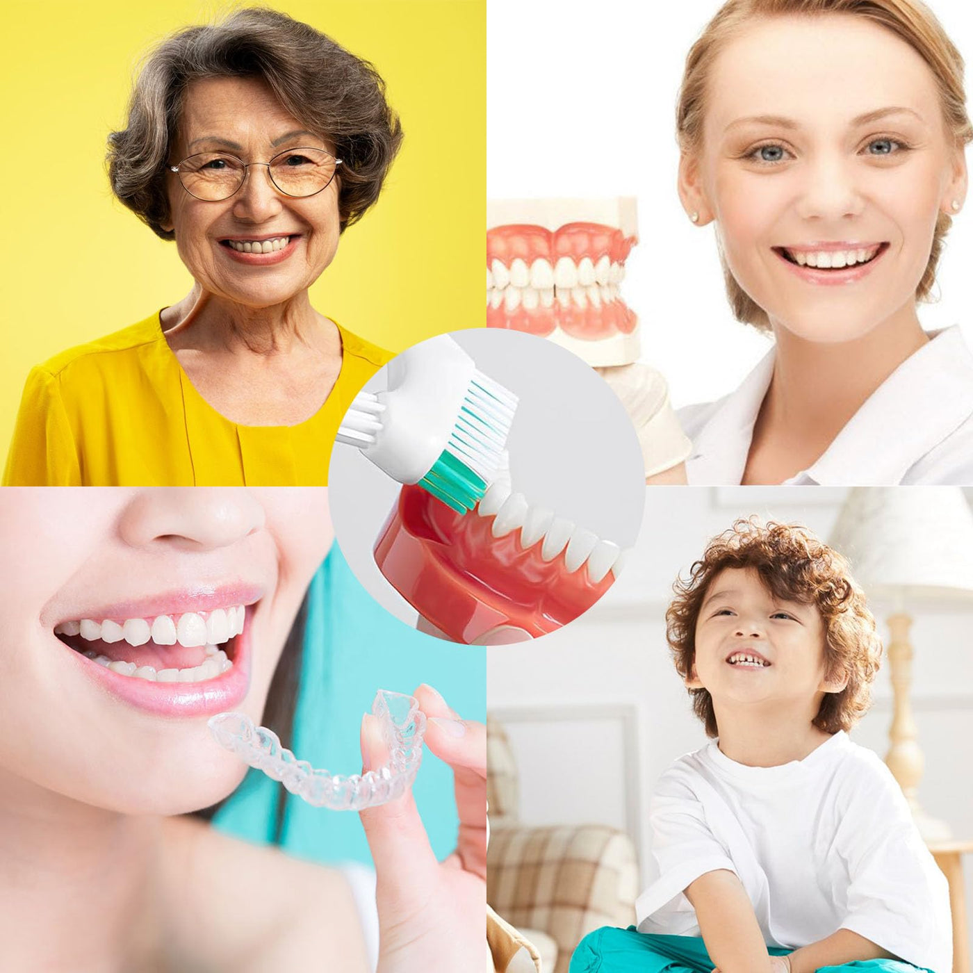- for cleaning artificial teeth - The brushes have multi-layer bristles, which are stiff and elastic, not easy to deform, and can gently clean all parts of your dentures without damaging or scratching them.