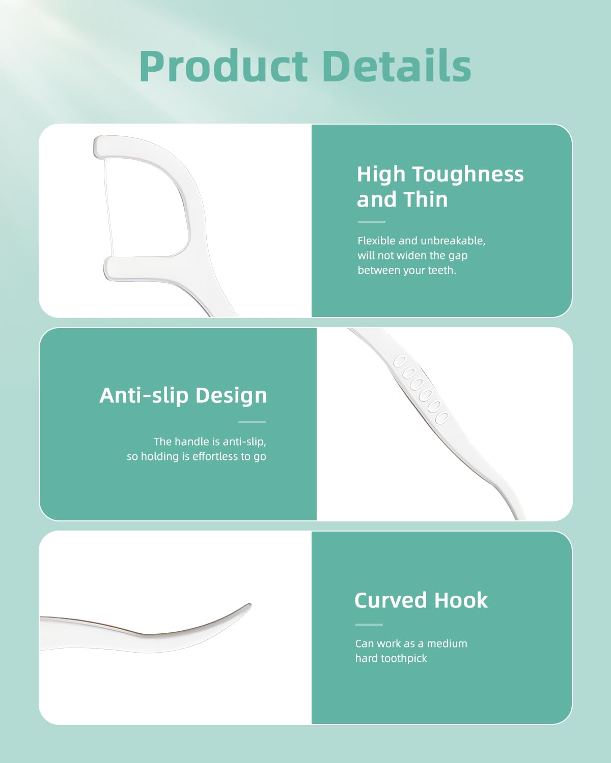 - Enjoy a beautiful, healthy smile: Maintain your oral hygiene every day with the dental floss sticks. Effectively prevent bad breath, swollen gums, periodontitis and tooth decay by removing food residue.
