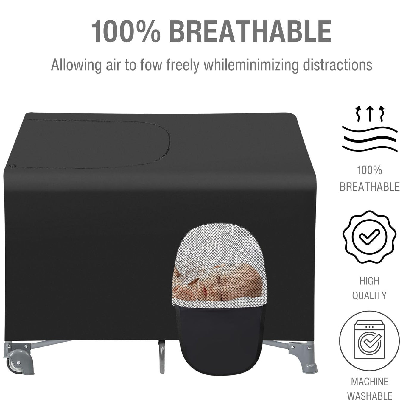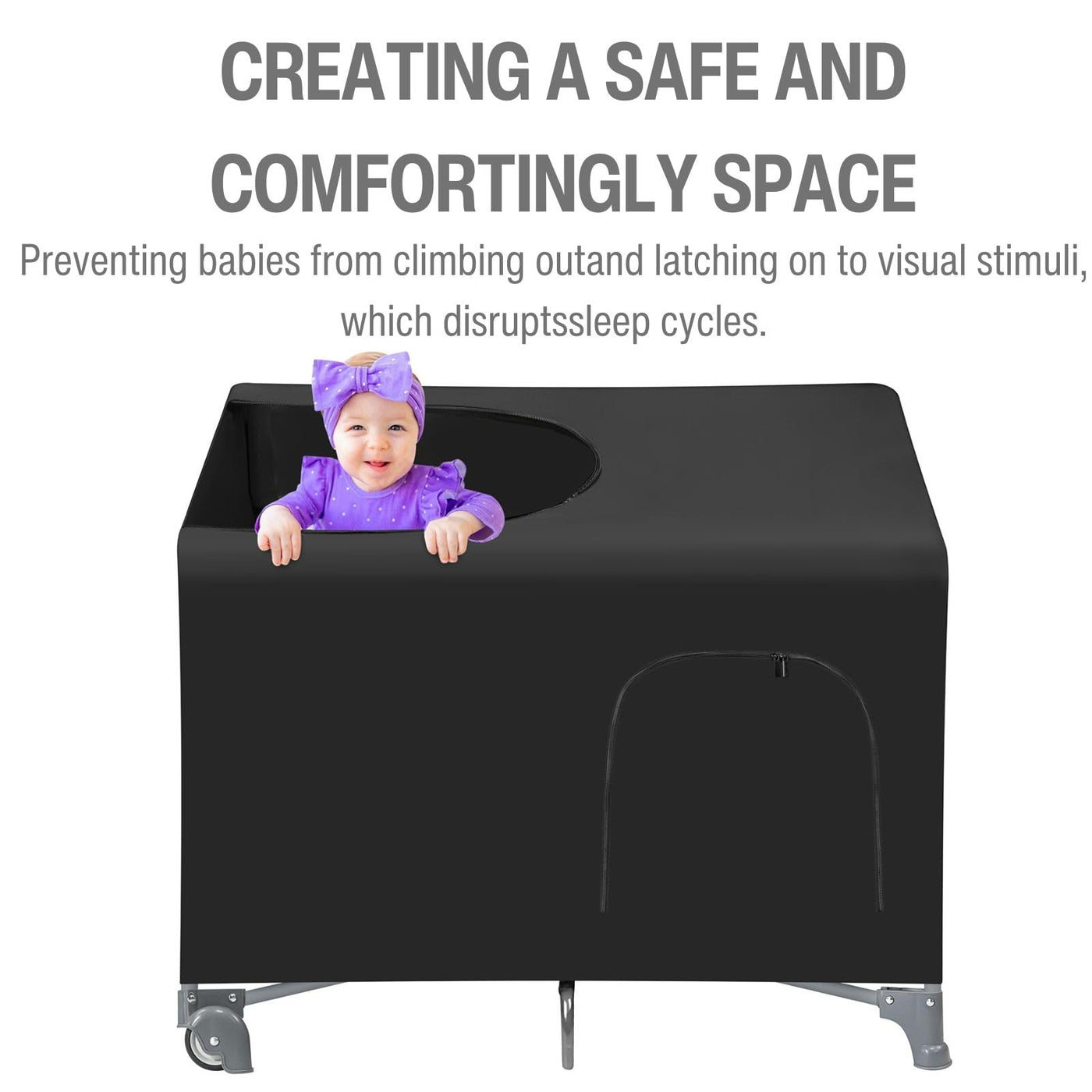 PandaEar Blackout Cover for Pack N Play, Breathable Crib Canopy Cover Tent for Pack and Play, Portable Stretchy Baby Netting for Indoor & Outdoor