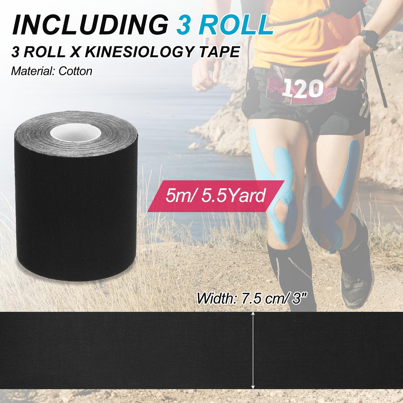 - Length: 5 m / 5.5 Yard; Width: 7.5 cm / 3 inch; Packing List: 3 Roll x Kinesiology Tapes
