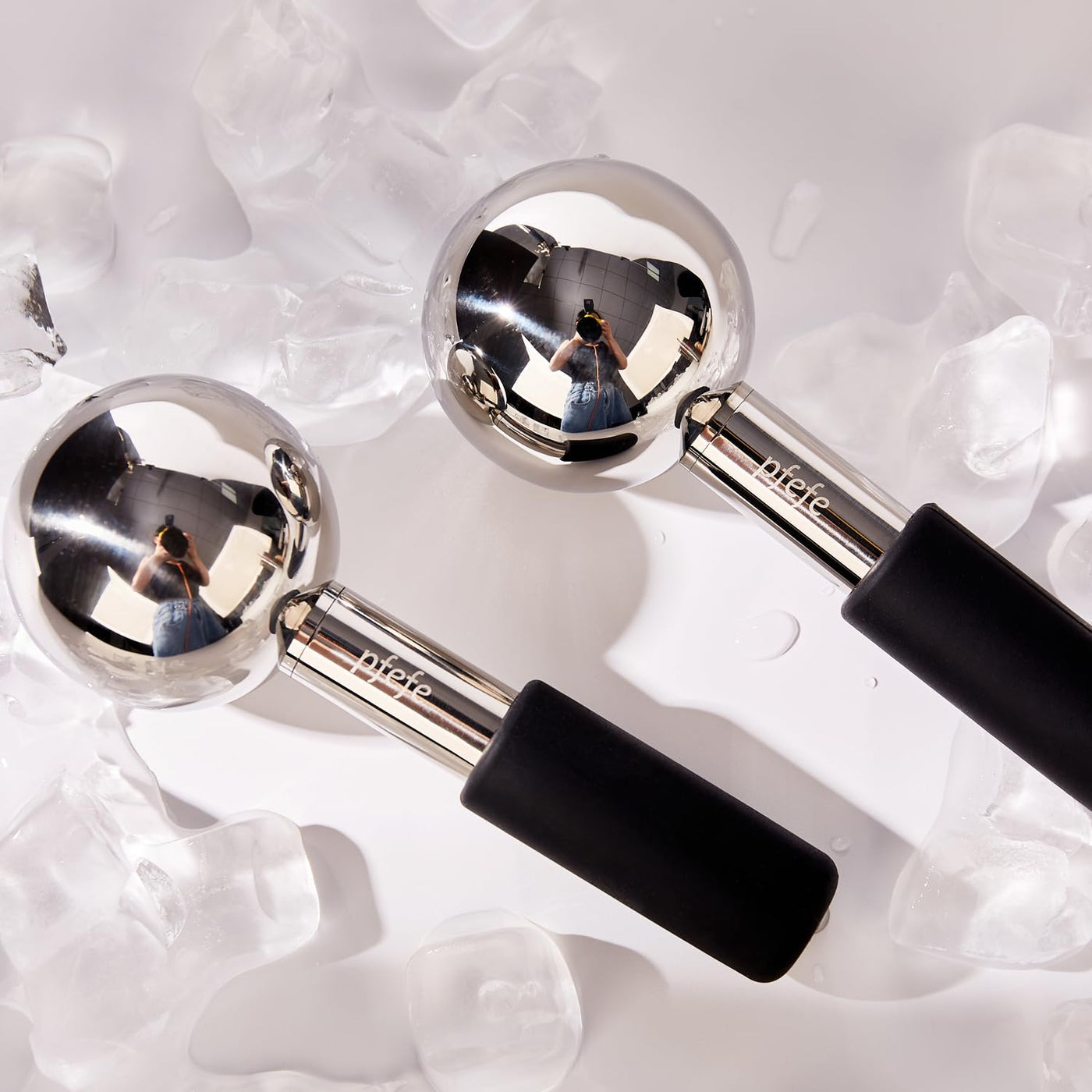 Pfefe 360 Rotating Ice Globes for Face & Eyes, Unbreakable Stainless Steel Cryo Sticks for Beauty Routines, Facials Cold Roller Colling Globes for Puffiness, Wrinkles, Dark Circles, Headaches